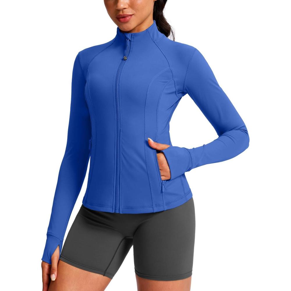 G Gradual Women's Workout Jackets Extended Waist Length Slim Full Zip 4 Pockets Athletic Jacket Spring Running Yoga Clothes(Royal Blue)