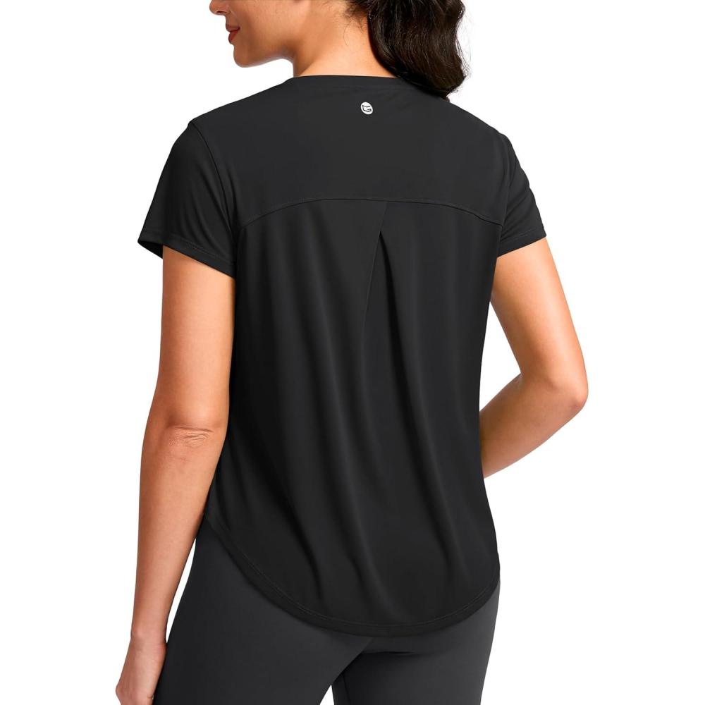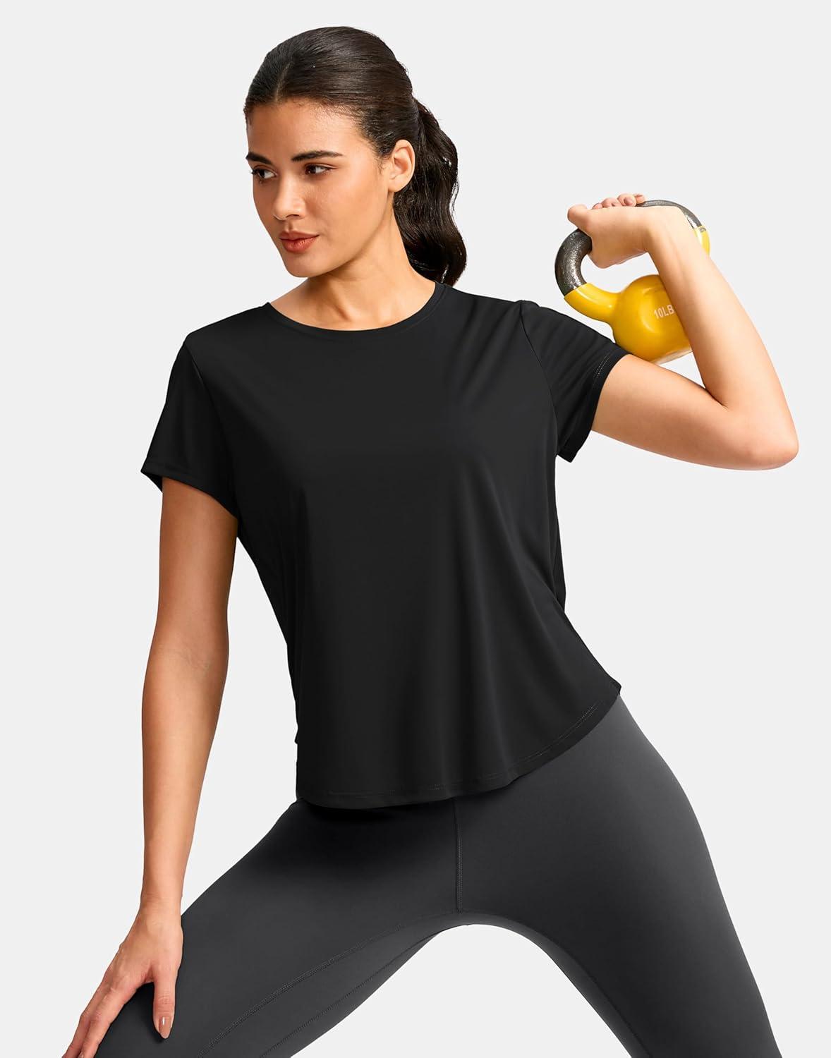 G Gradual Women's Workout Tops Short Sleeve Lightweight Athletic Yoga Running Shirts Loose Fit Quick Dry Gym T-Shirts(Black)
