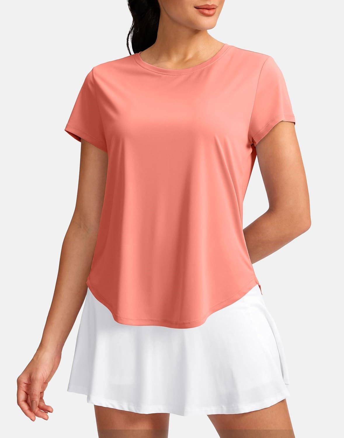 G Gradual Women's Workout Tops Short Sleeve Lightweight Athletic Yoga Running Shirts Loose Fit Quick Dry Gym T-Shirts(Coral Pink)