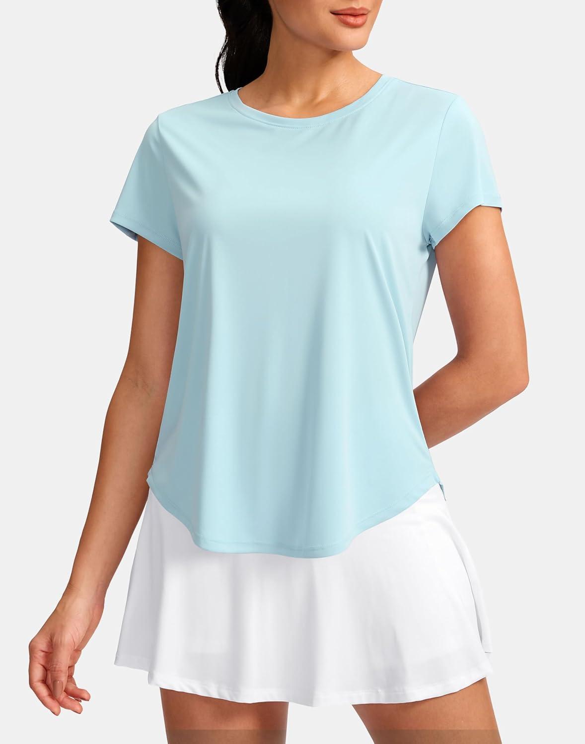 G Gradual Women's Workout Tops Short Sleeve Lightweight Athletic Yoga Running Shirts Loose Fit Quick Dry Gym T-Shirts(Light Turquoise)