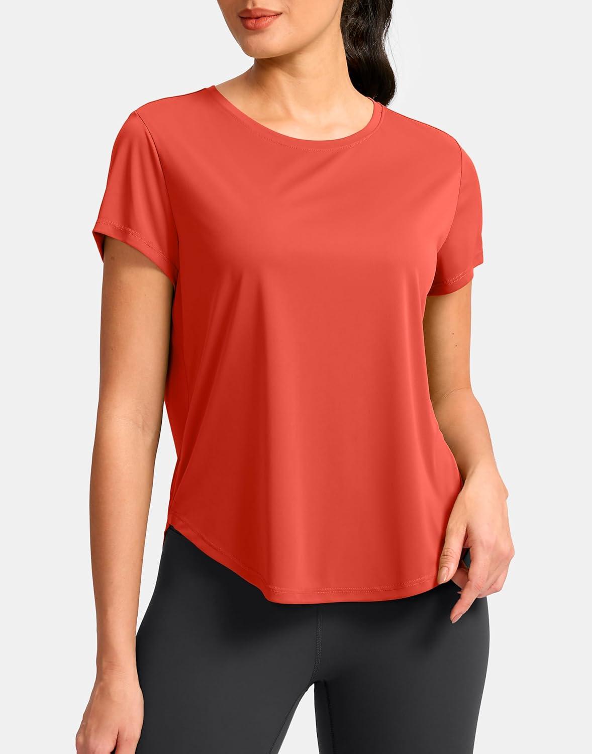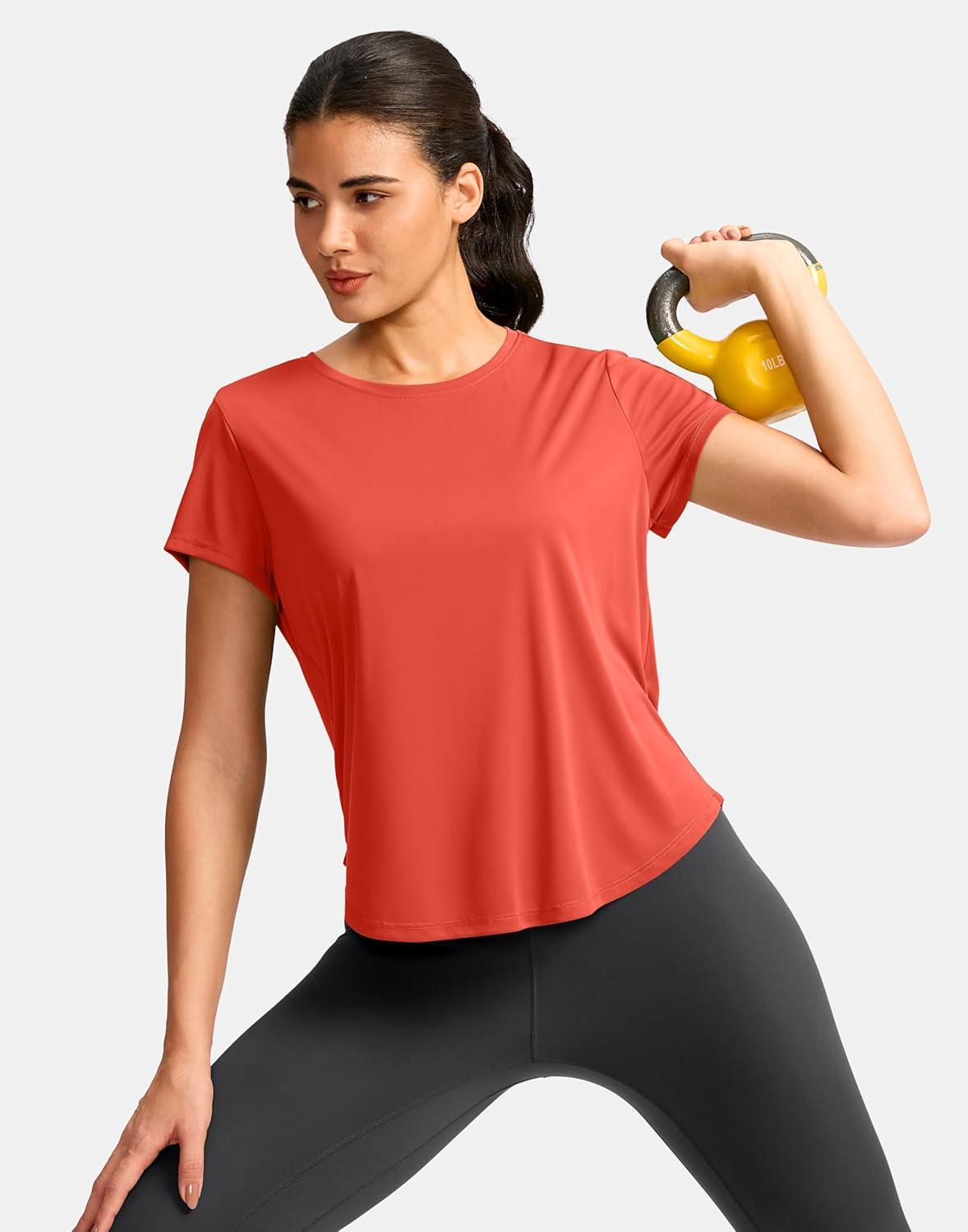 G Gradual Women's Workout Tops Short Sleeve Lightweight Athletic Yoga Running Shirts Loose Fit Quick Dry Gym T-Shirts(Orange Red)