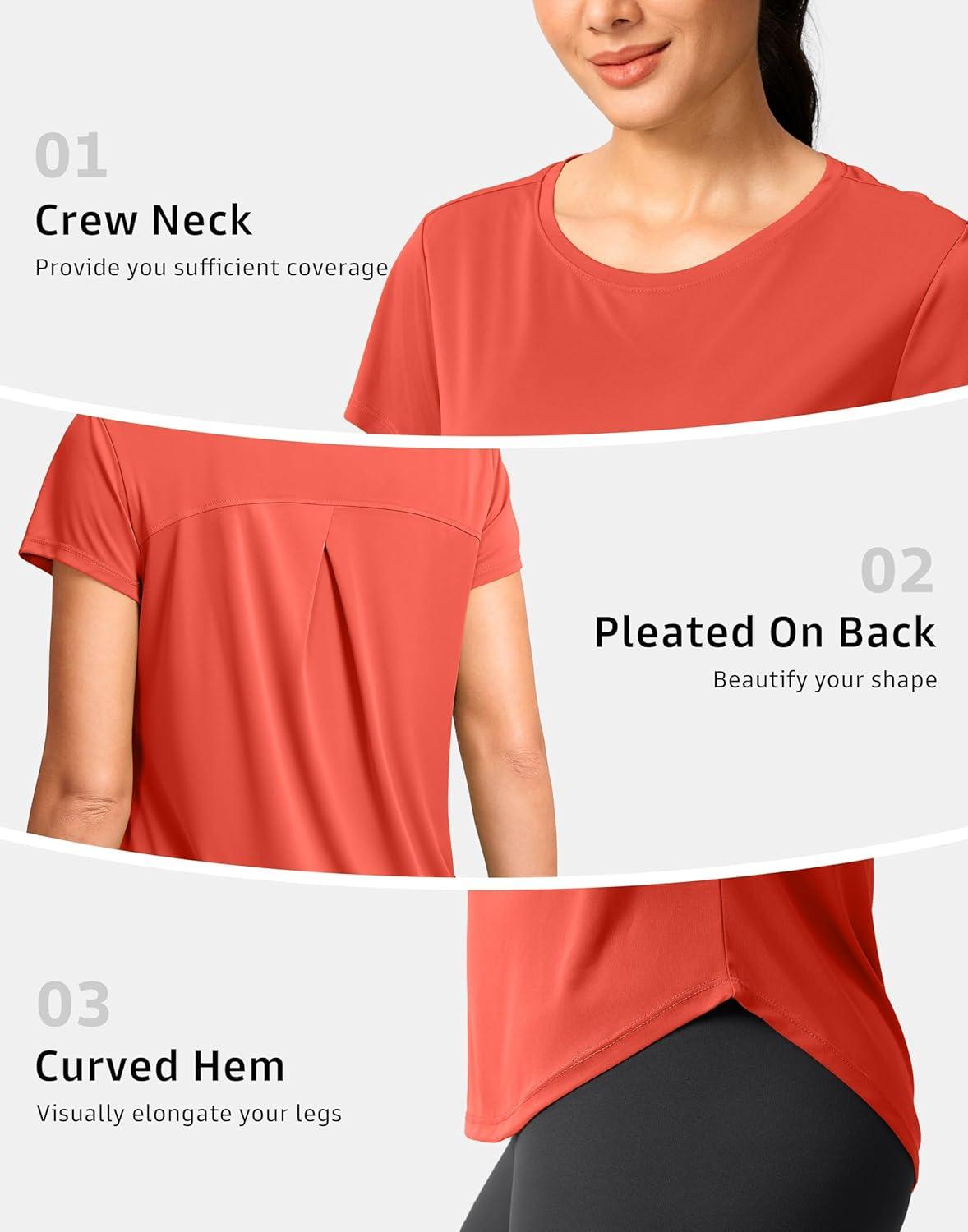G Gradual Women’s Workout Tops Short Sleeve Lightweight Athletic Yoga Running Shirts Loose Fit Quick Dry Gym T-Shirts(Coral)