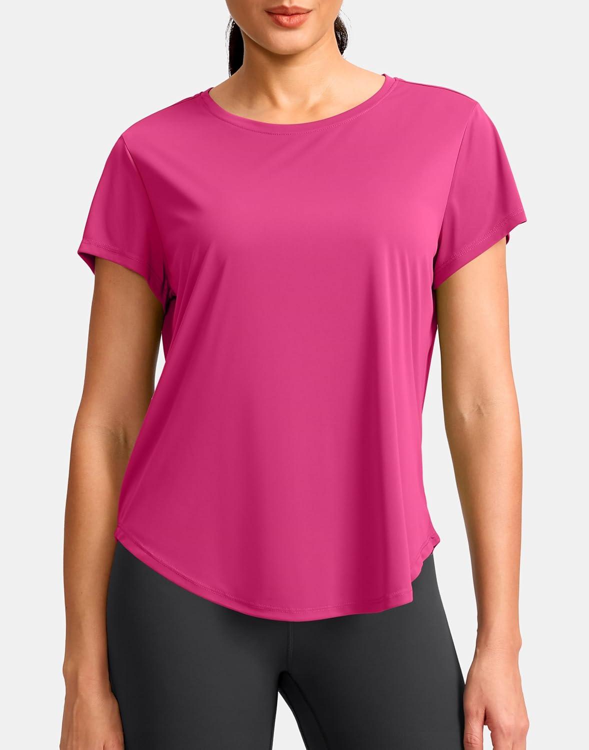 G Gradual Women's Workout Tops Short Sleeve Lightweight Athletic Yoga Running Shirts Loose Fit Quick Dry Gym T-Shirts(Rose)