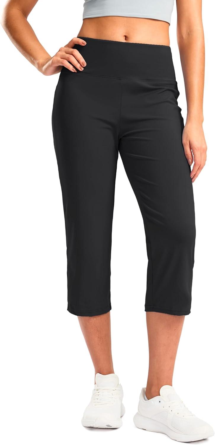 G Gradual Women's Yoga Capri Pants with Zipper Pocket High Waist Leggings Crop Straight Leg Workout Exercise Capris for Women(Black)