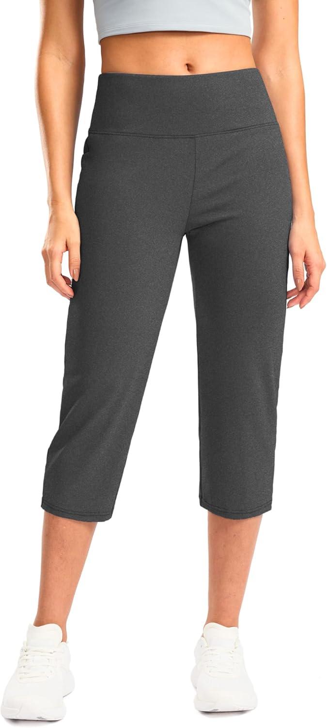 G Gradual Women's Yoga Capri Pants with Zipper Pocket High Waist Leggings Crop Straight Leg Workout Exercise Capris for Women(Charcoal)
