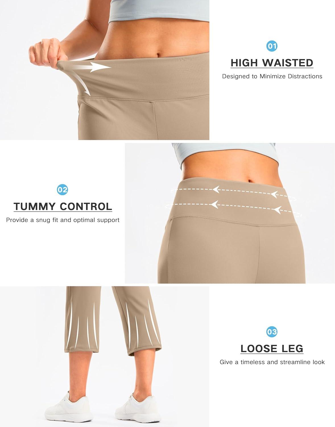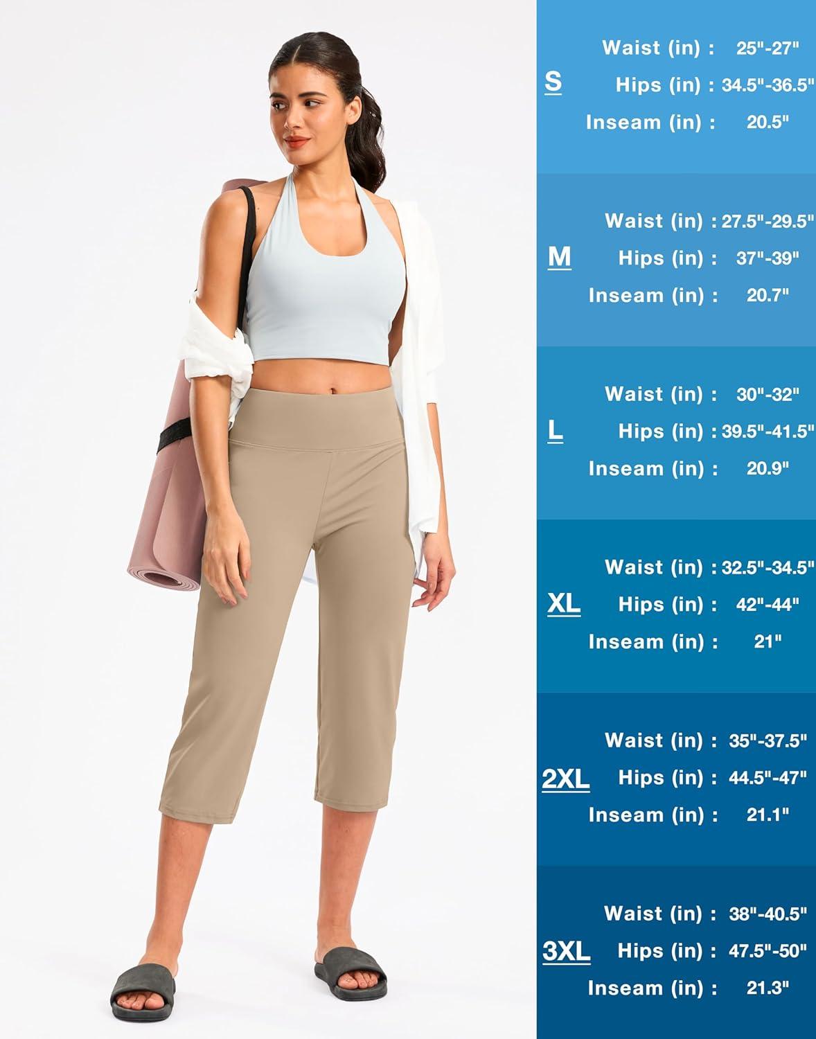 G Gradual Women's Yoga Capri Pants with Zipper Pocket High Waist Leggings Crop Straight Leg Workout Exercise Capris for Women(Khaki)