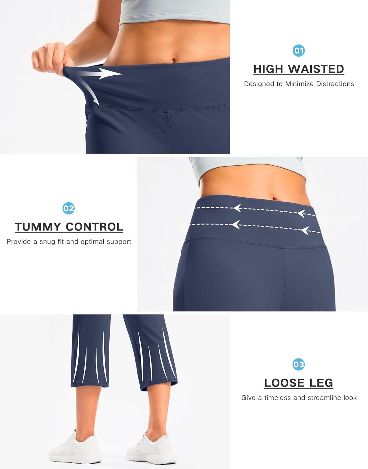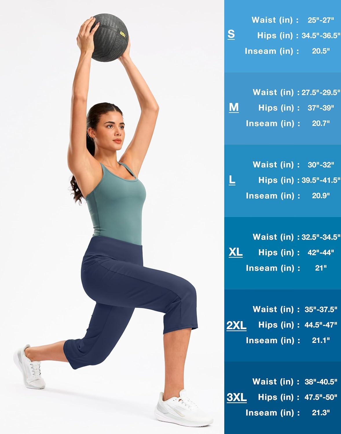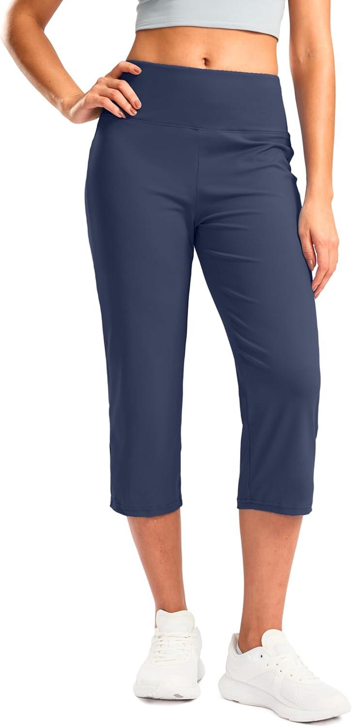 G Gradual Women’s Yoga Capri Pants with Zipper Pocket High Waist Leggings Crop Straight Leg Workout Exercise Capris for Women(Navy)