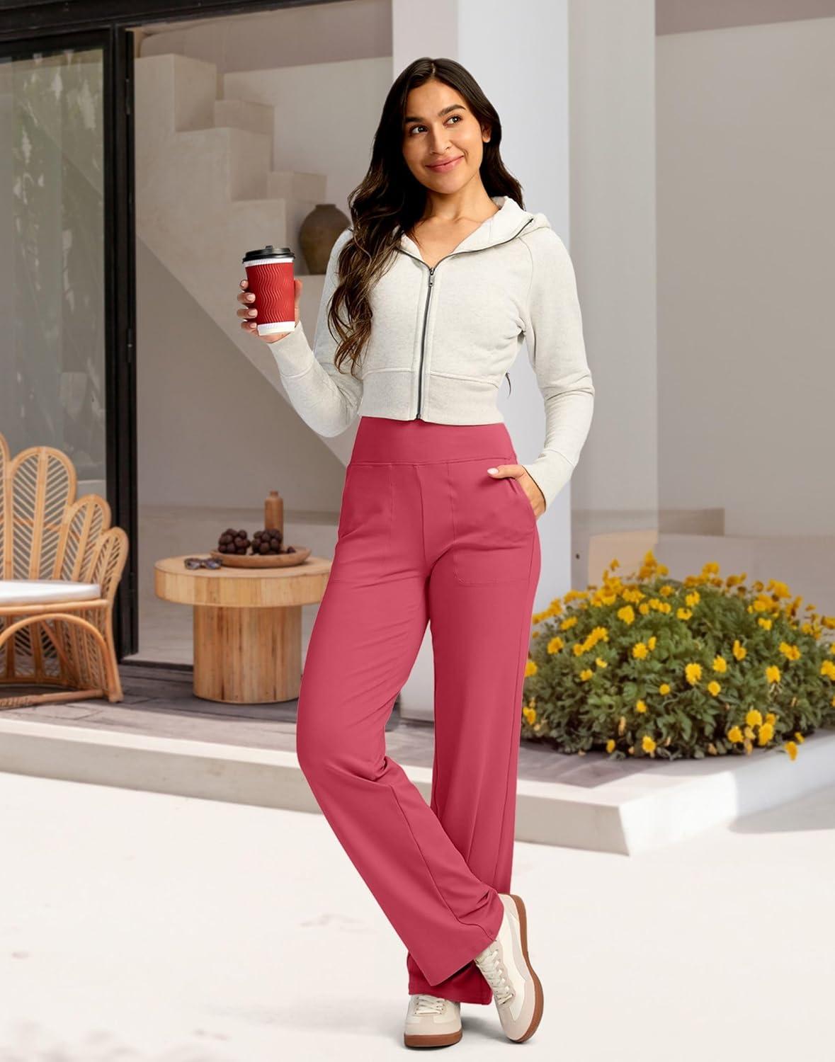 G Gradual Women's Yoga Pants Wide Leg wiht Pockets High Waist Stretch Loose Casual Lounge Sweatpants Petite/Regular/Tall(Pink)