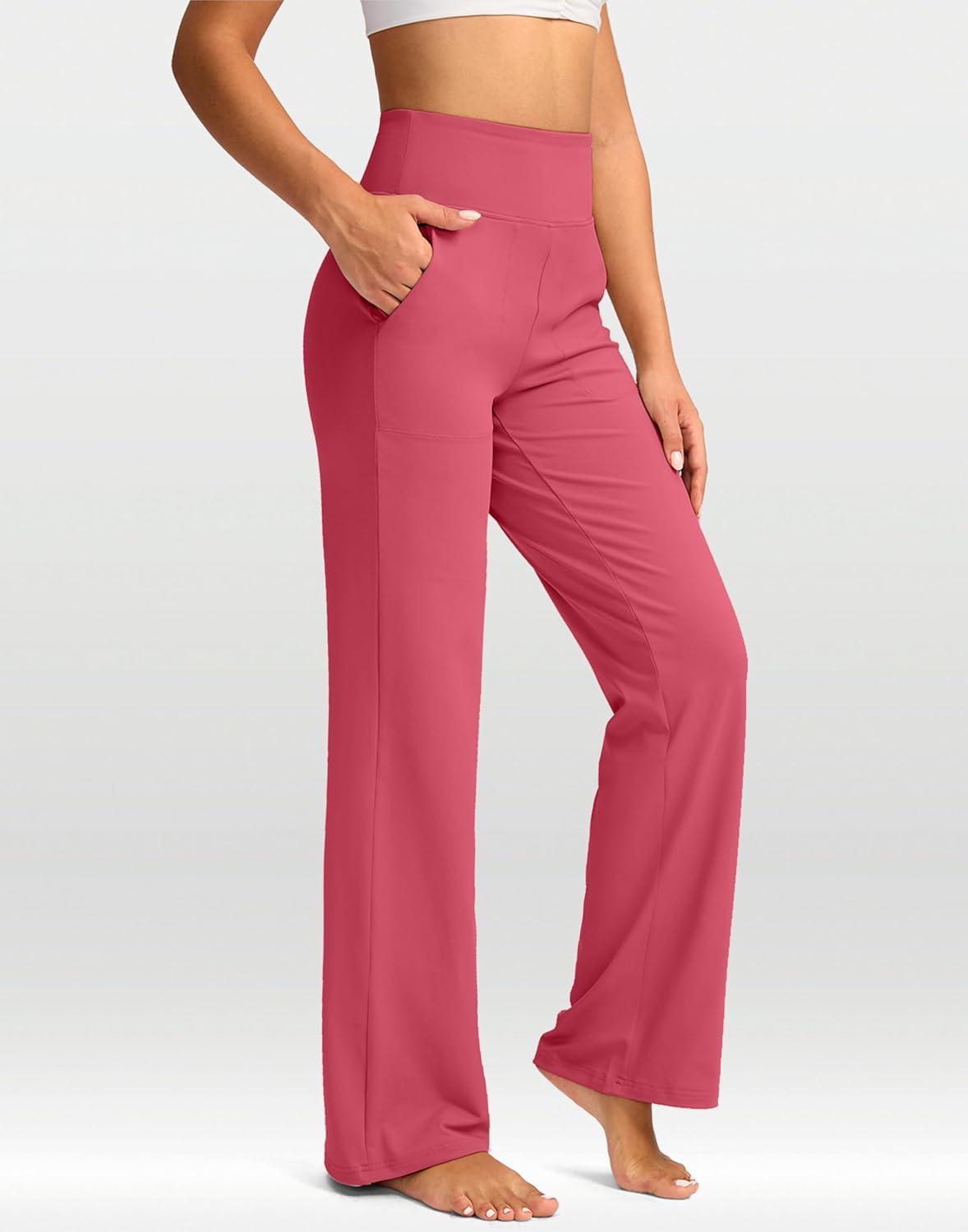G Gradual Women’s Yoga Pants Wide Leg wiht Pockets High Waist Stretch Loose Casual Lounge Sweatpants Petite/Regular/Tall(Pink)
