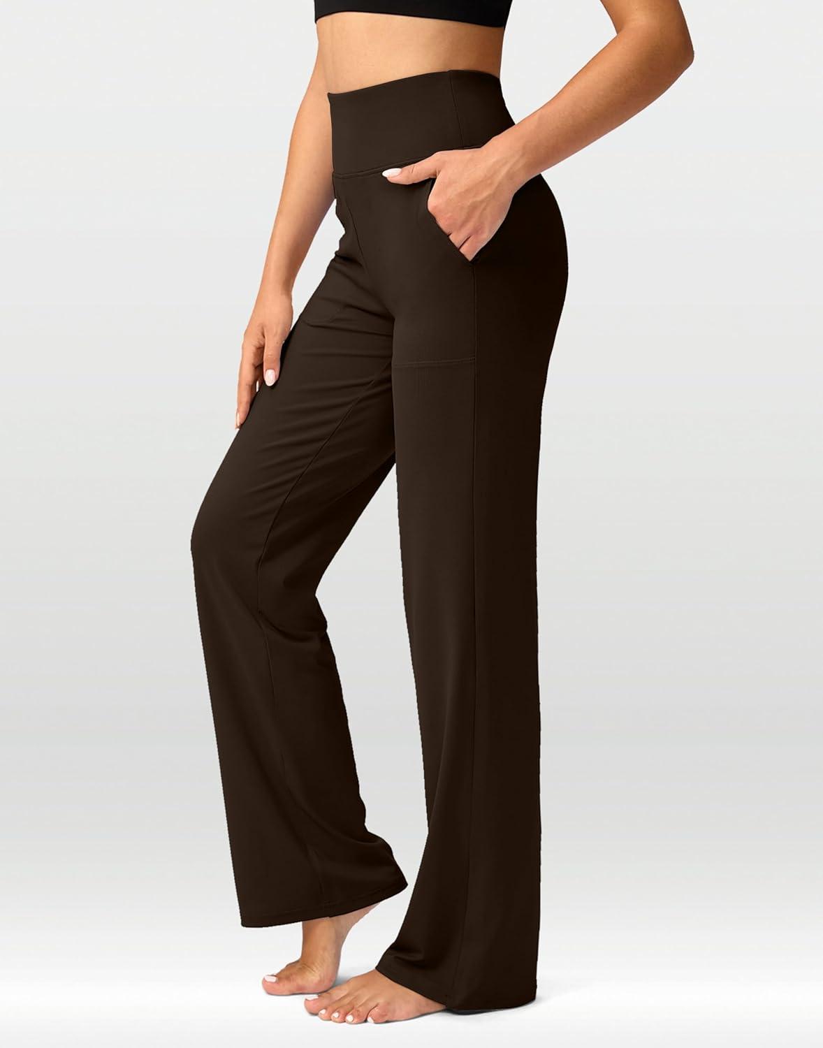 G Gradual Women's Yoga Pants Wide Leg wiht Pockets High Waist Stretch Loose Casual Lounge Sweatpants Petite/Regular/Tall(Reddish Brown)