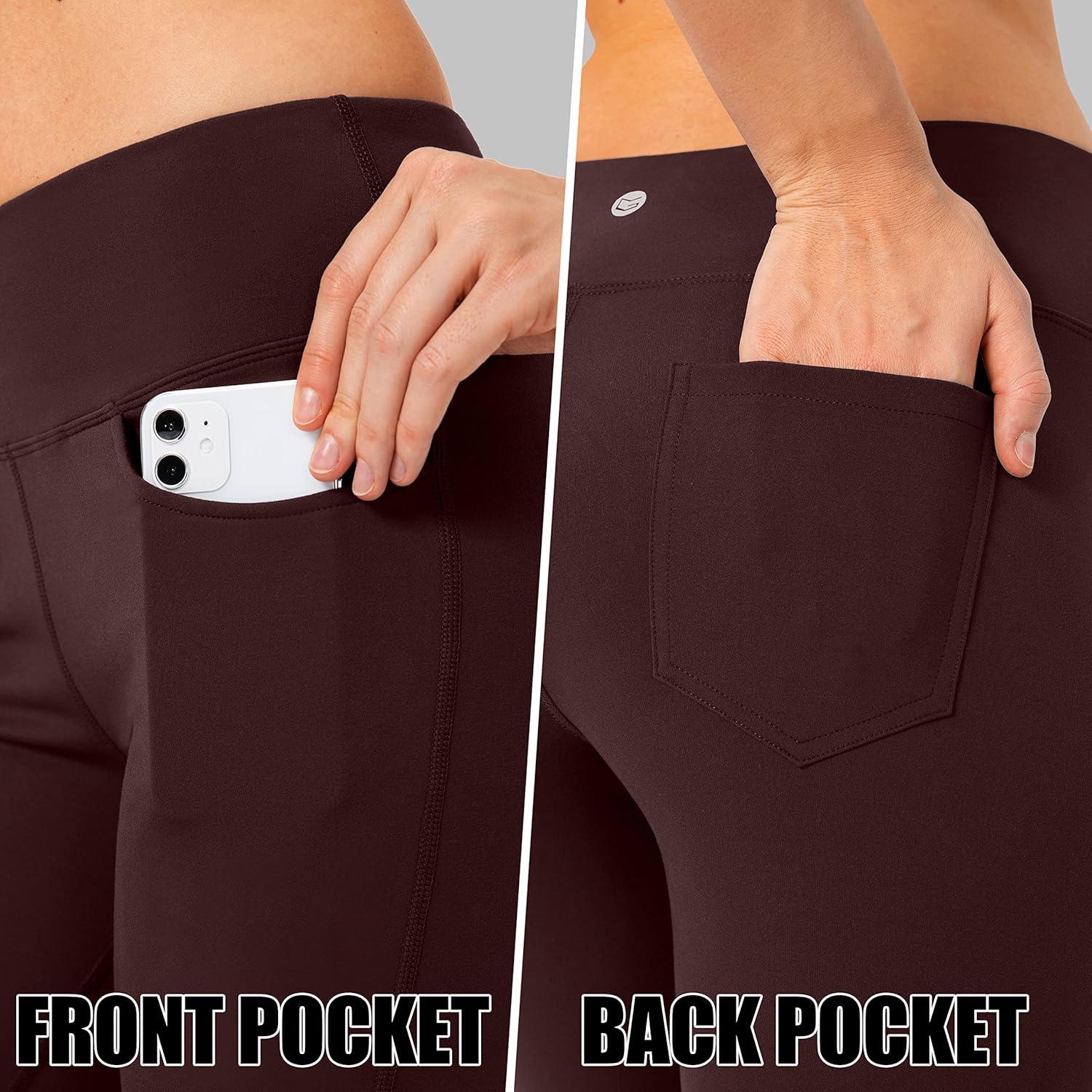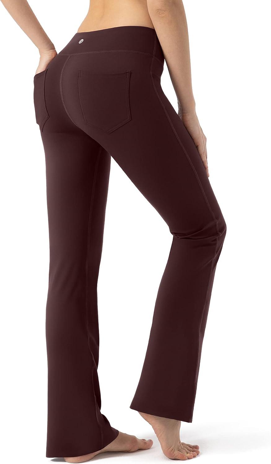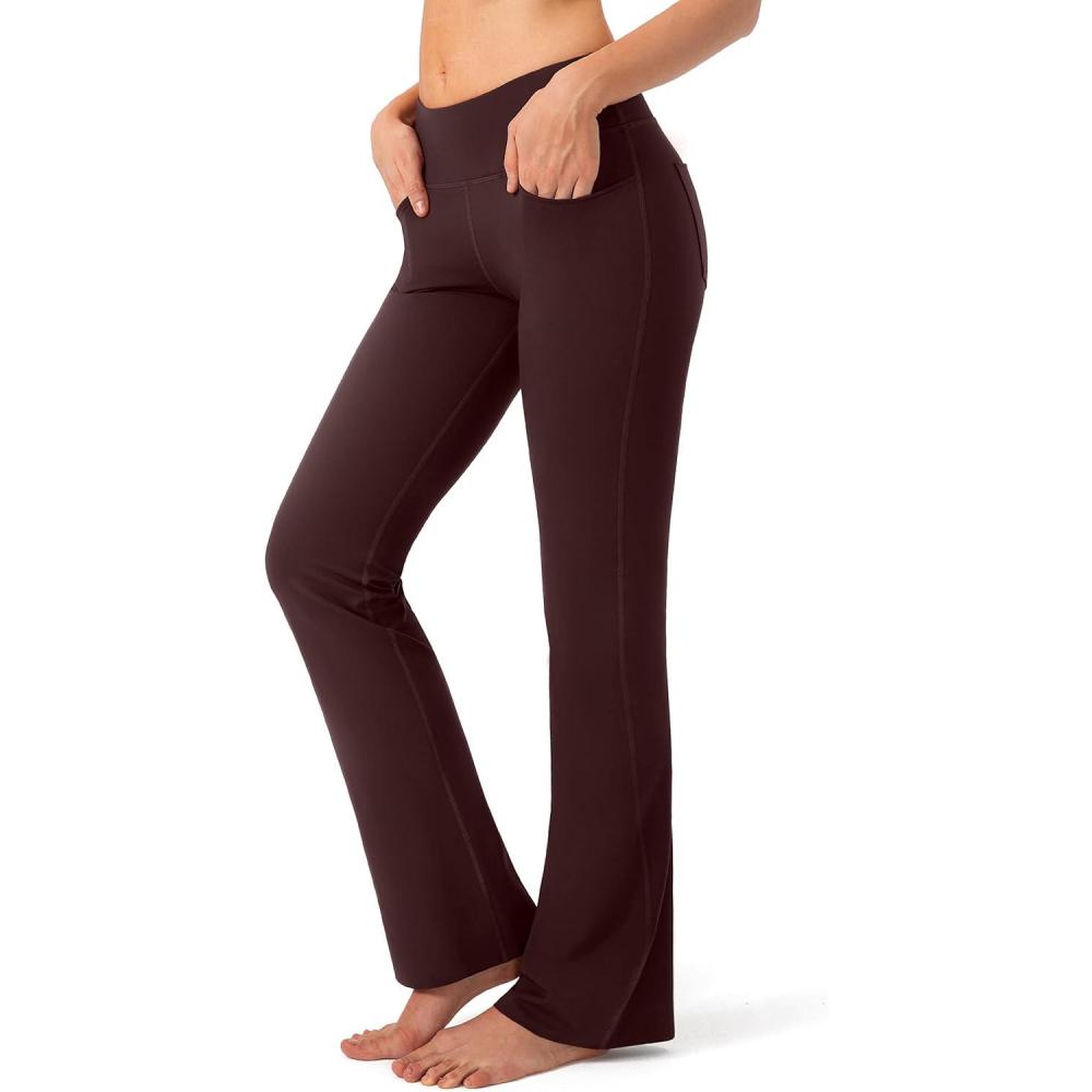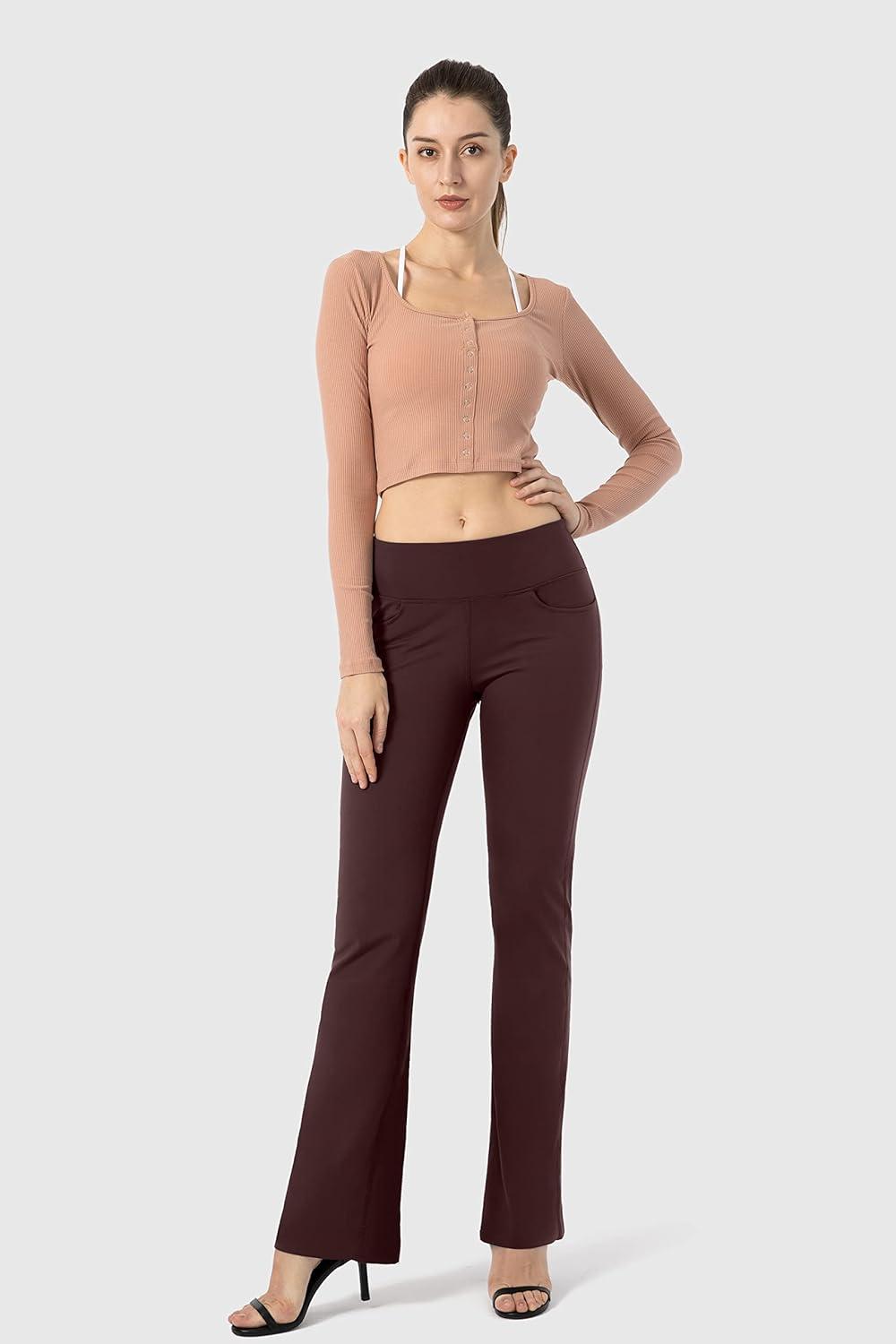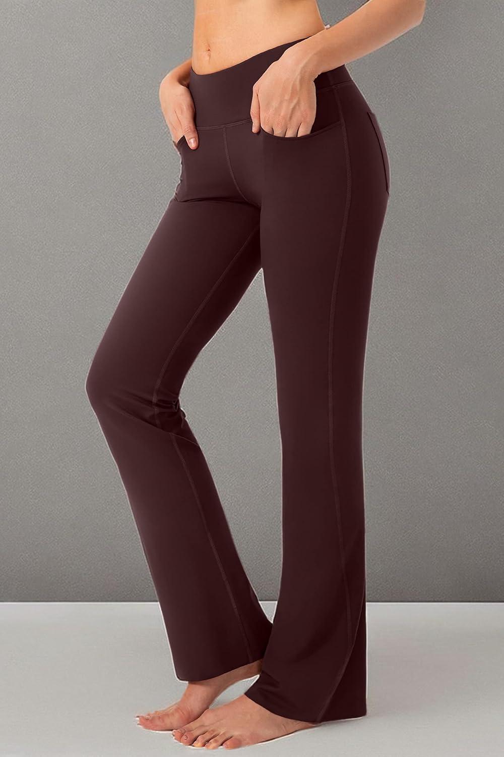 G Gradual Women's Yoga Pants with Pockets Flare Leggings High Waist Yoga Dress Pants Tall Bootcut Casual Work(Brown)