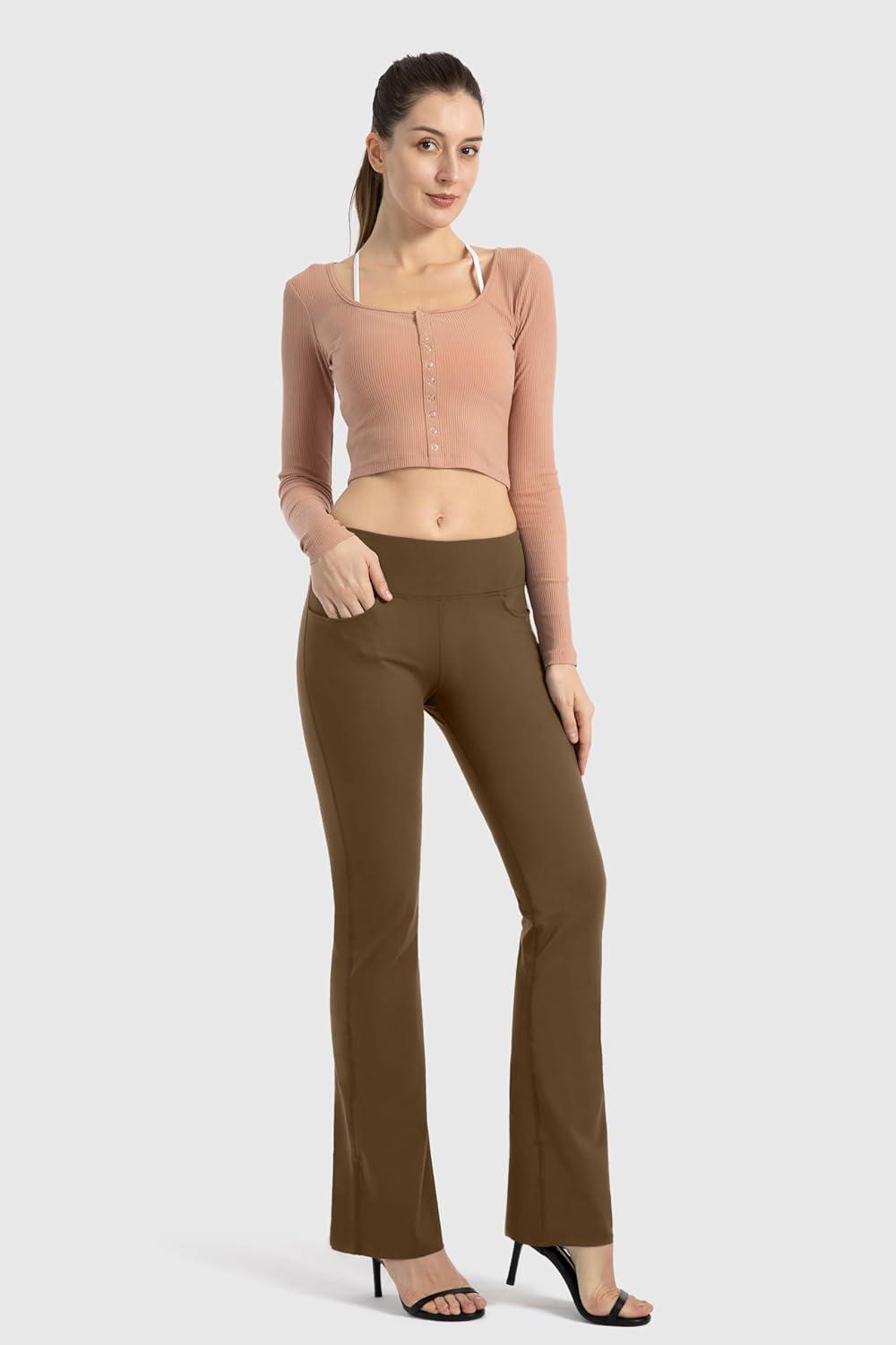 G Gradual Women's Yoga Pants with Pockets Flare Leggings High Waist Yoga Dress Pants Tall Bootcut Casual Work(Coffee)