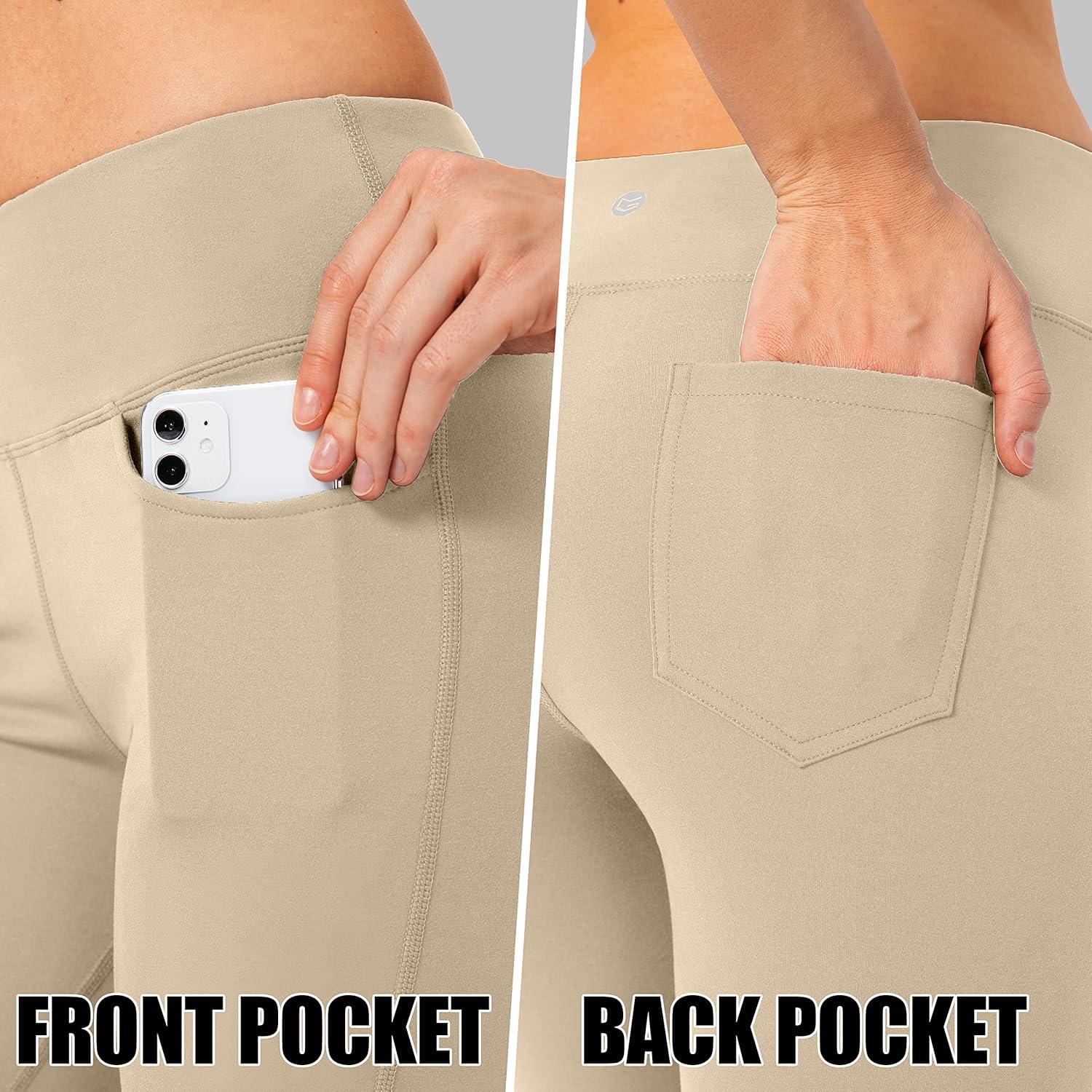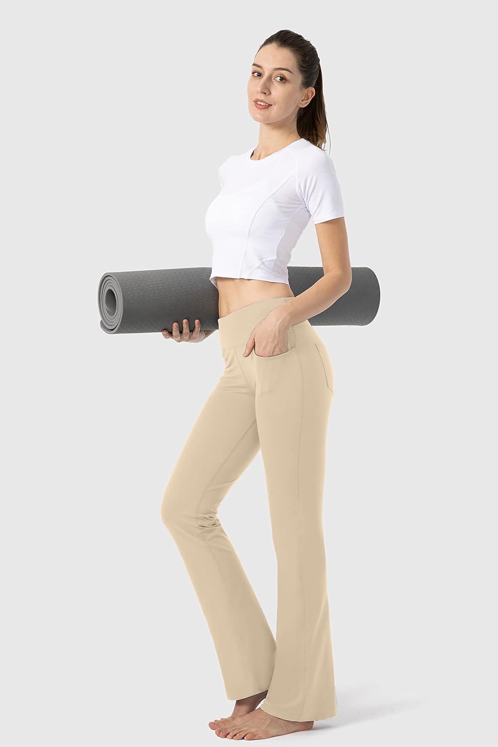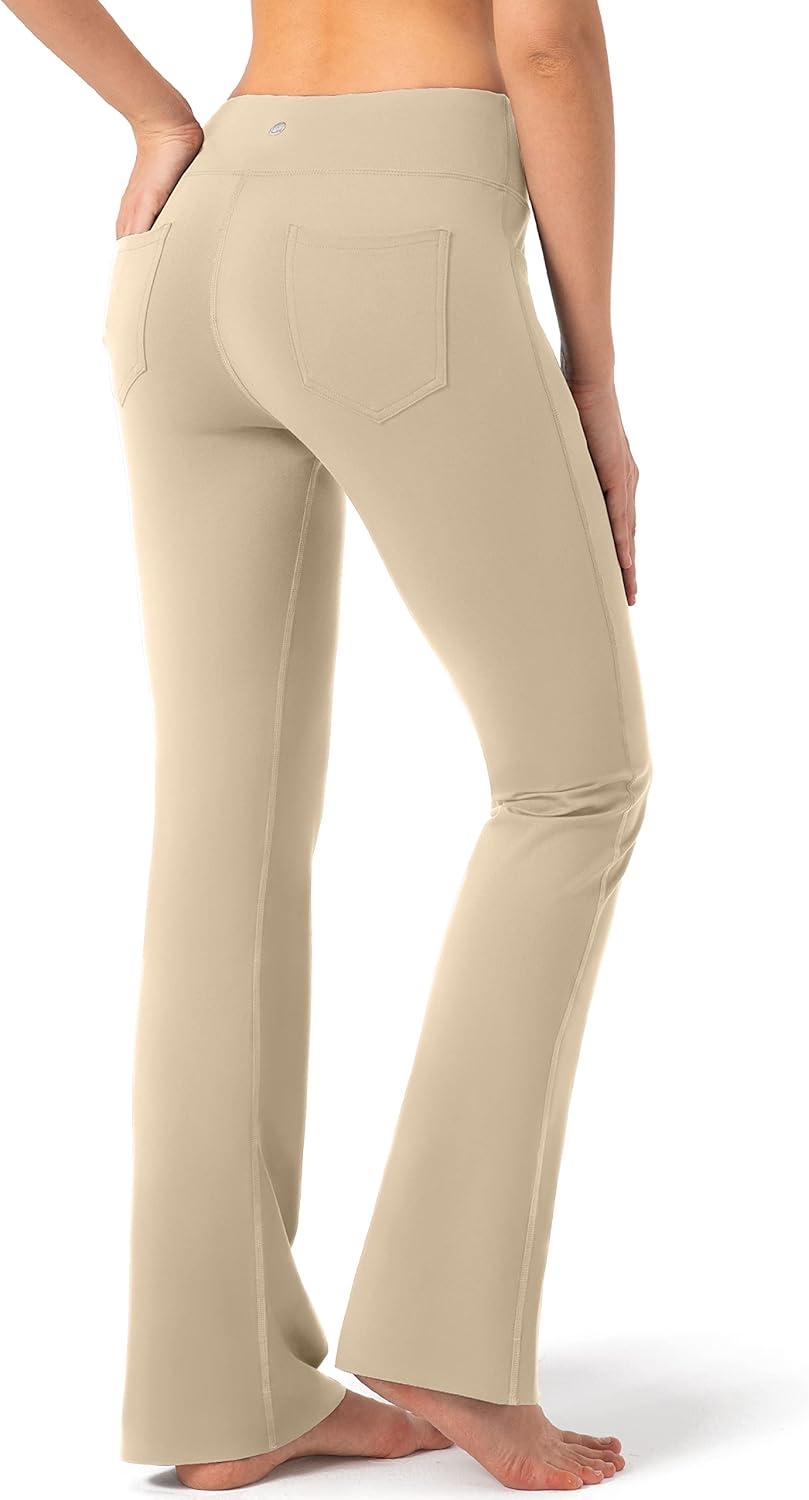 G Gradual Women’s Yoga Pants with Pockets Flare Leggings High Waist Yoga Dress Pants Tall Bootcut Casual Work(Light Khaki)