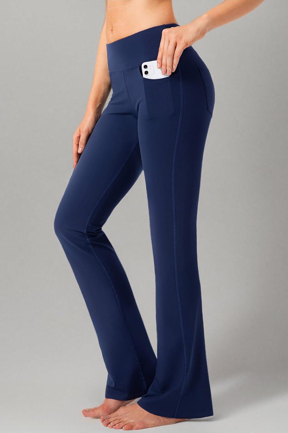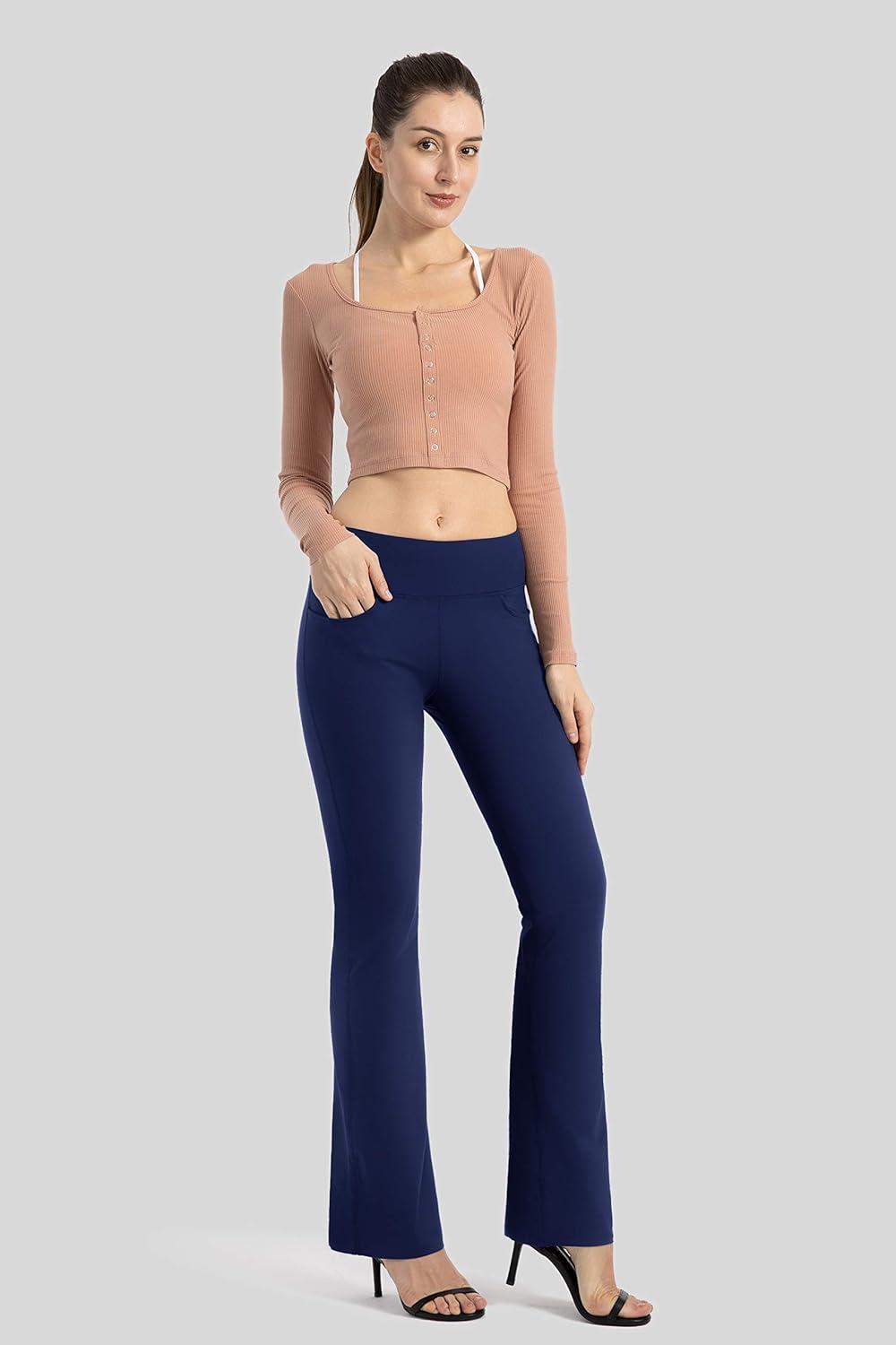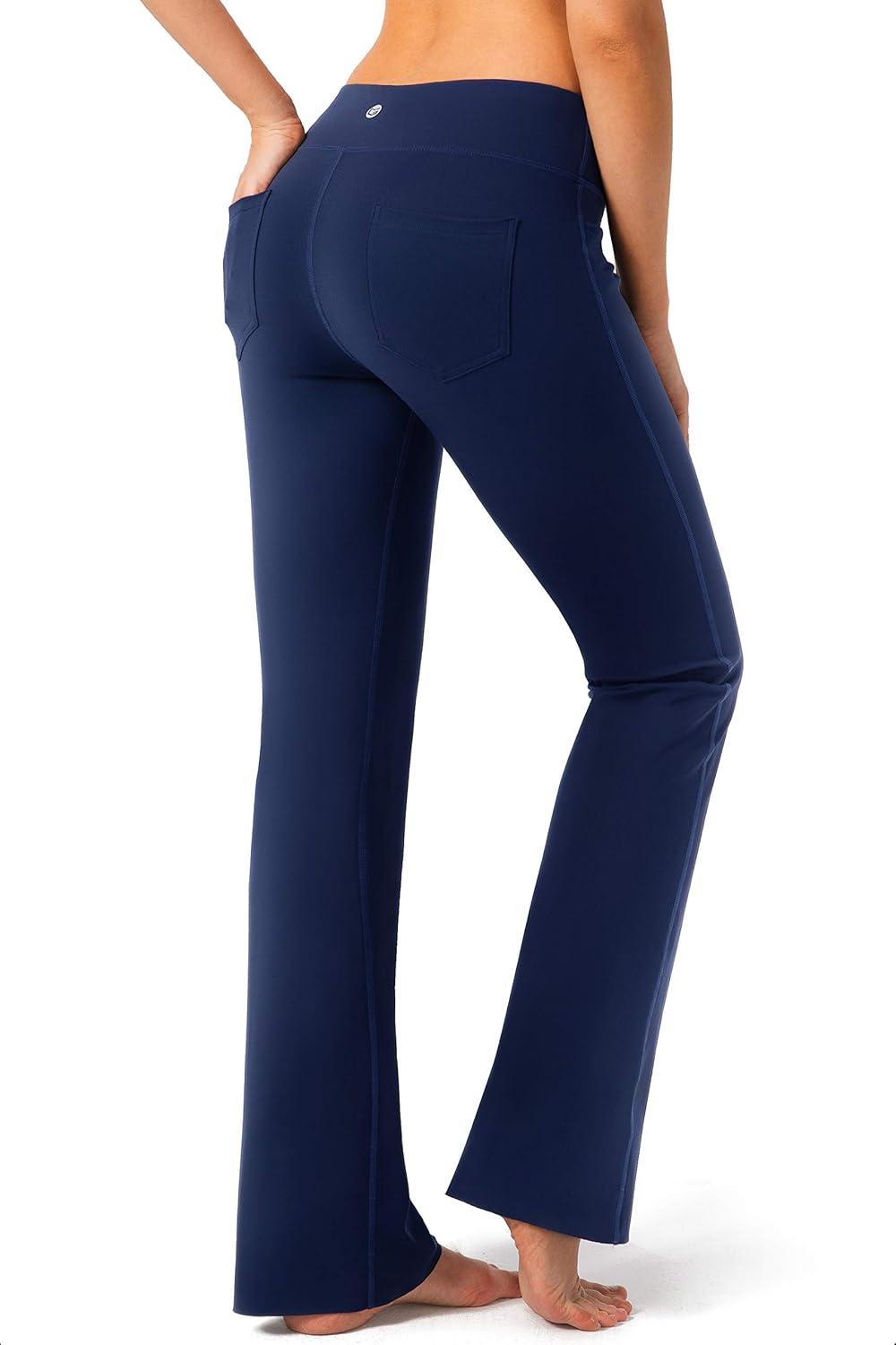 G Gradual Women’s Yoga Pants with Pockets Flare Leggings High Waist Yoga Dress Pants Tall Bootcut Casual Work(Navy)