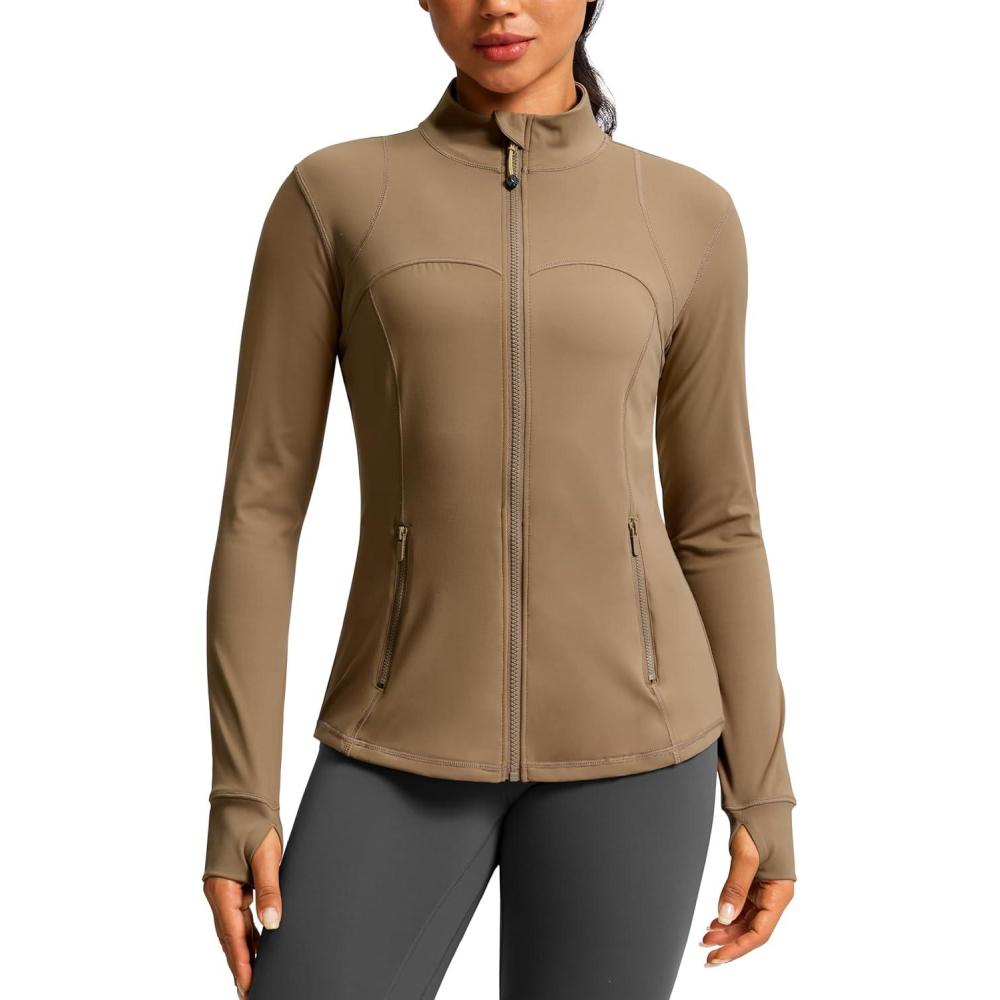 G Gradual Workout Jackets for Woman Hip-Length Slim Fit Zip Up 4 Pockets Athletic Jacket Spring Gym Running Clothes(Fudge Coffee)