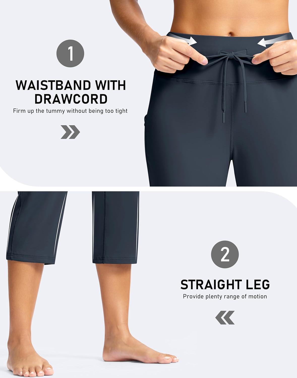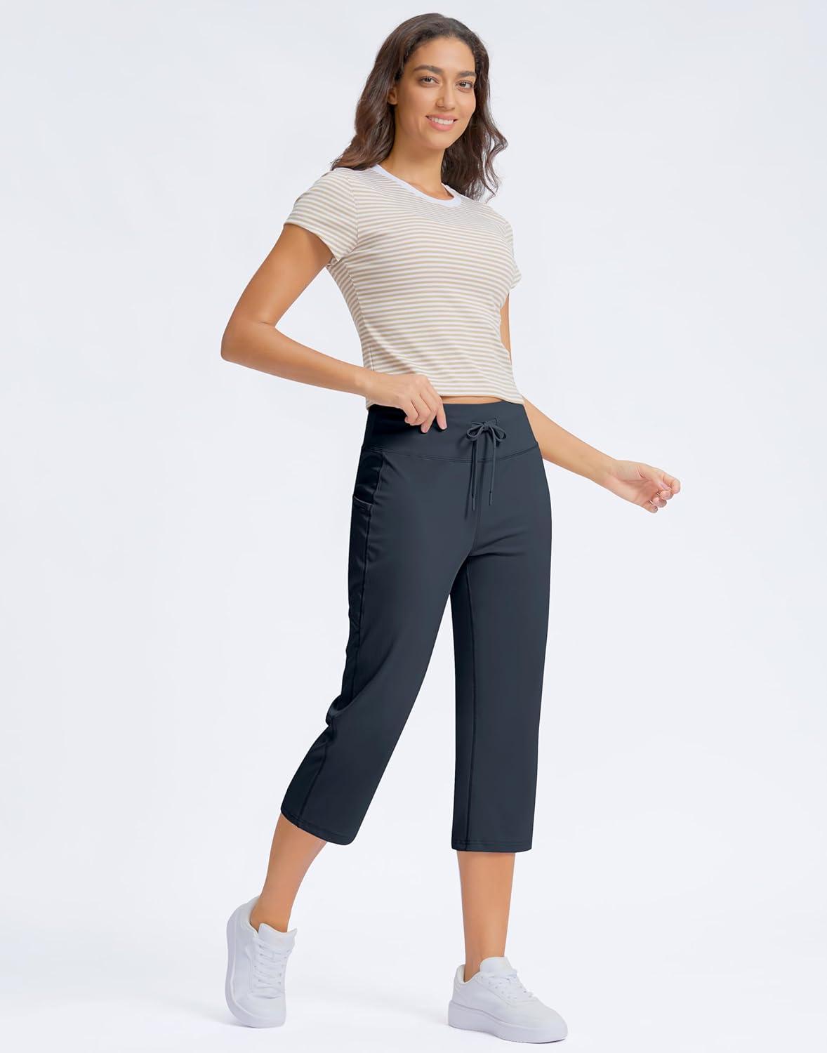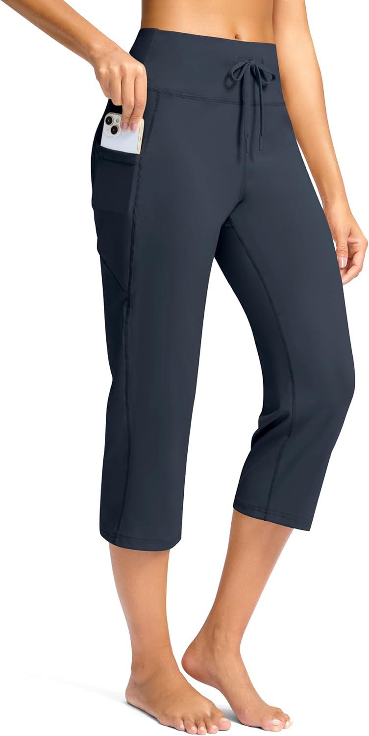 G Gradual Yoga Capri Pants for Women with Pockets High Waist Capris Leggings Tummy Control Straight Workout Summer Crop Pants(Dark Grey)