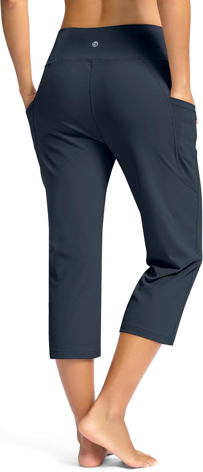 G Gradual Yoga Capri Pants for Women with Pockets High Waist Capris Leggings Tummy Control Straight Workout Summer Crop Pants(Dusty Blue)