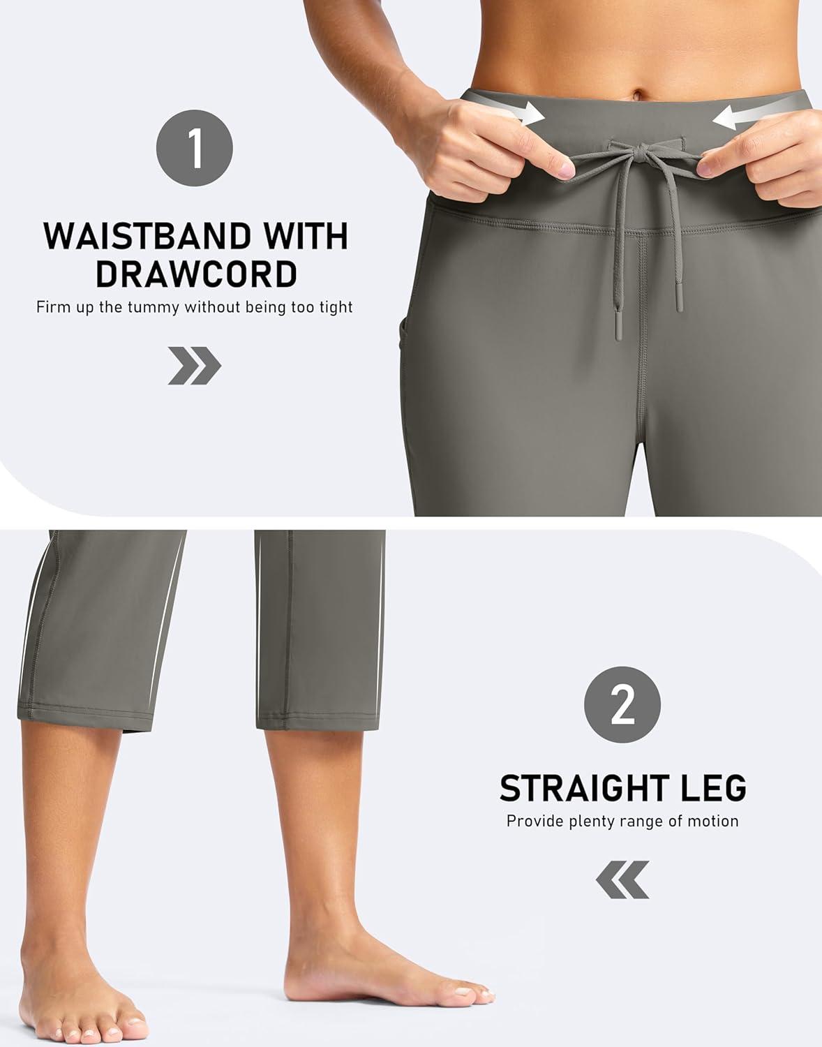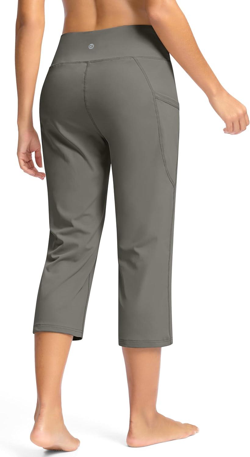 G Gradual Yoga Capri Pants for Women with Pockets High Waist Capris Leggings Tummy Control Straight Workout Summer Crop Pants(Khaki)