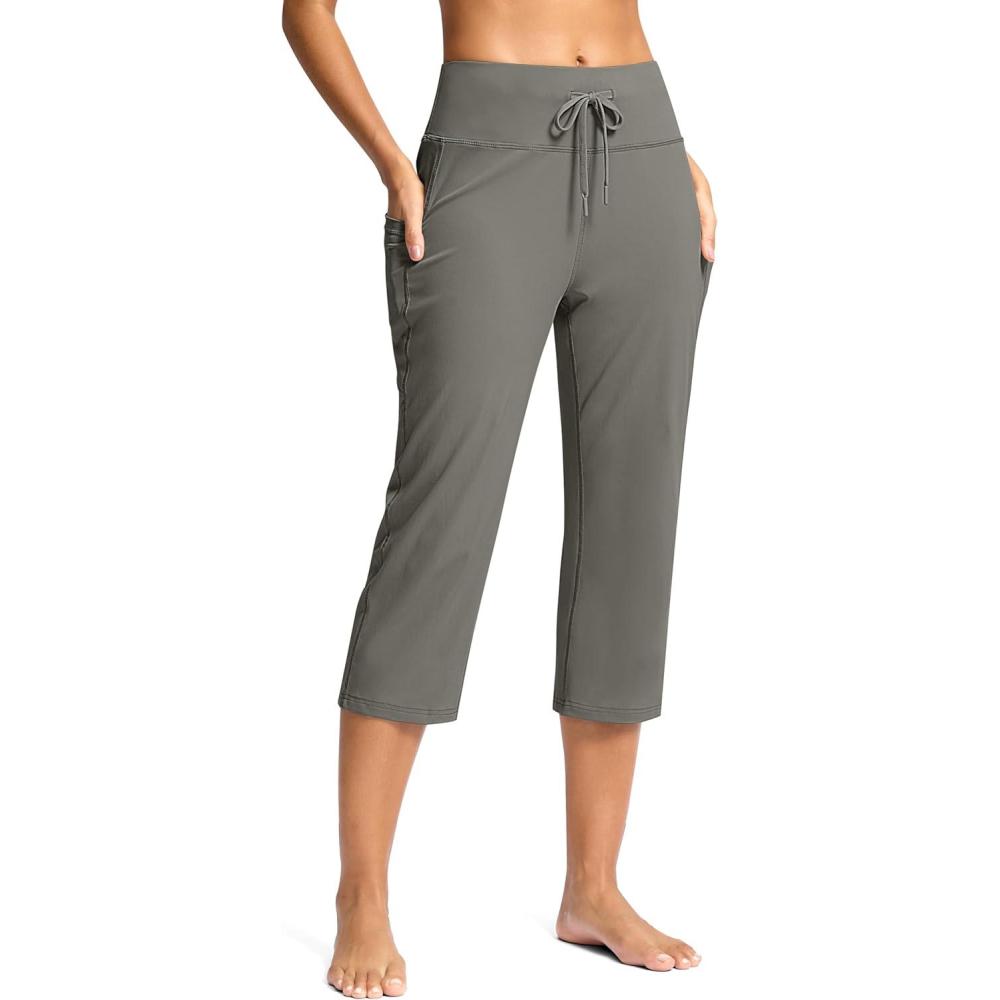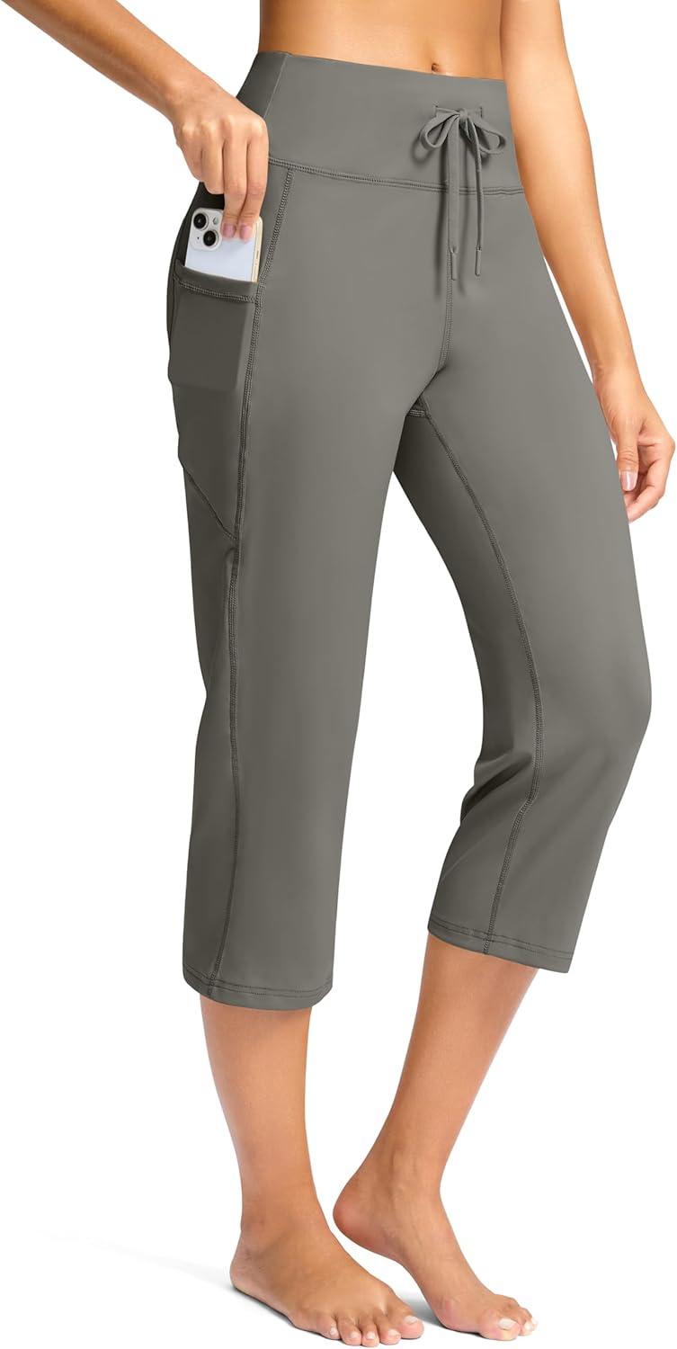 G Gradual Yoga Capri Pants for Women with Pockets High Waist Capris Leggings Tummy Control Straight Workout Summer Crop Pants(Light Grey)