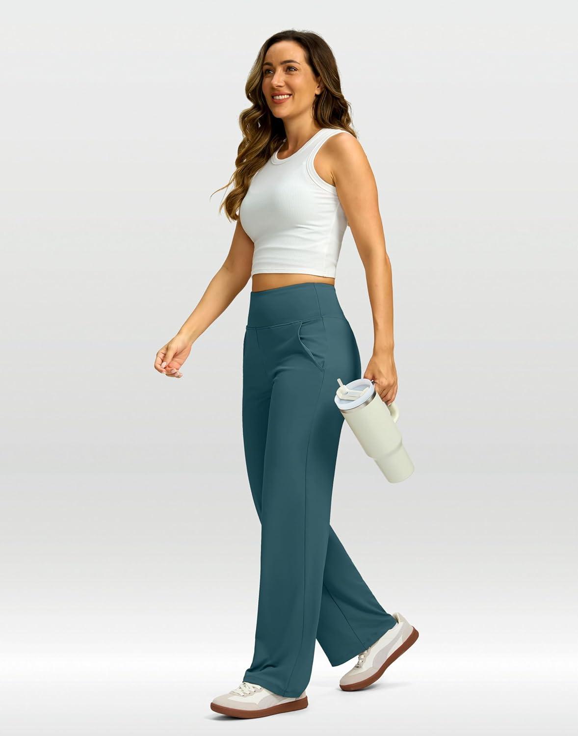 G Gradual Yoga Pants Women Wide Leg Dress Pants with Pockets High Waist Stretch Petite/Regular/Tall Casual Sweatpants Women(Ink Green)