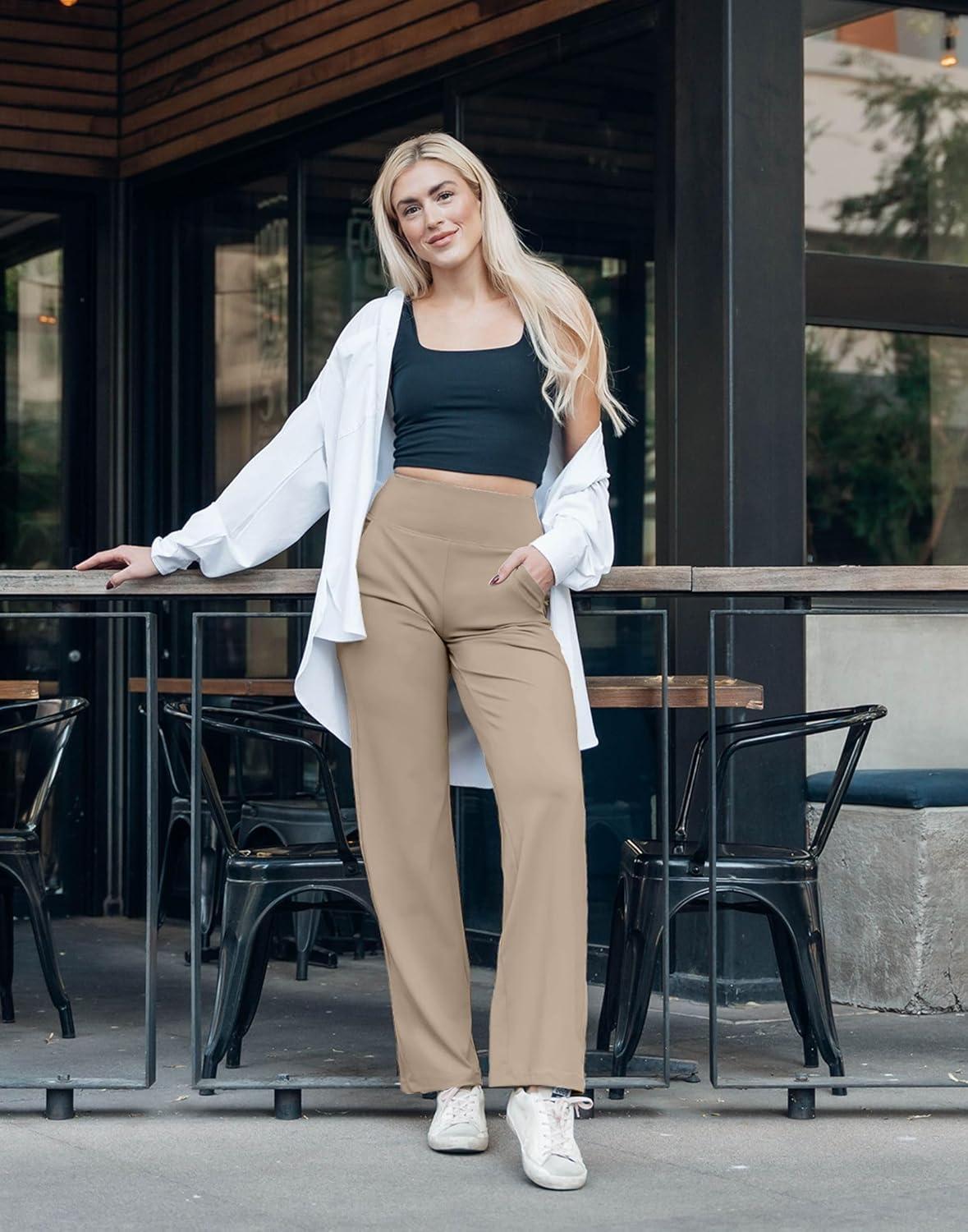 G Gradual Yoga Pants Women Wide Leg Dress Pants with Pockets High Waist Stretch Petite/Regular/Tall Casual Sweatpants Women(Khaki)