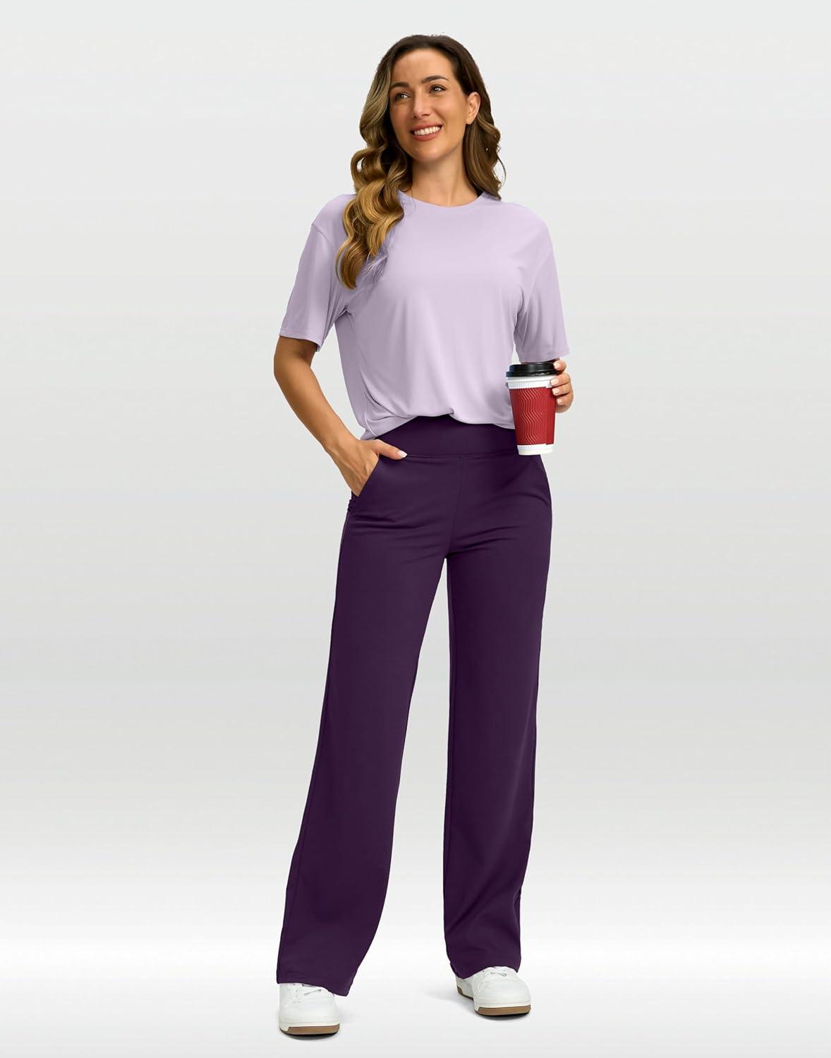 G Gradual Yoga Pants Women Wide Leg Dress Pants with Pockets High Waist Stretch Petite/Regular/Tall Casual Sweatpants Women(Purple)