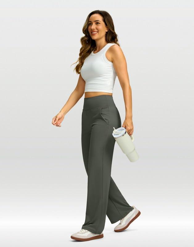 G Gradual Yoga Pants Women Wide Leg Dress Pants with Pockets High Waist Stretch Petite/Regular/Tall Casual Sweatpants Women(Olive Green)