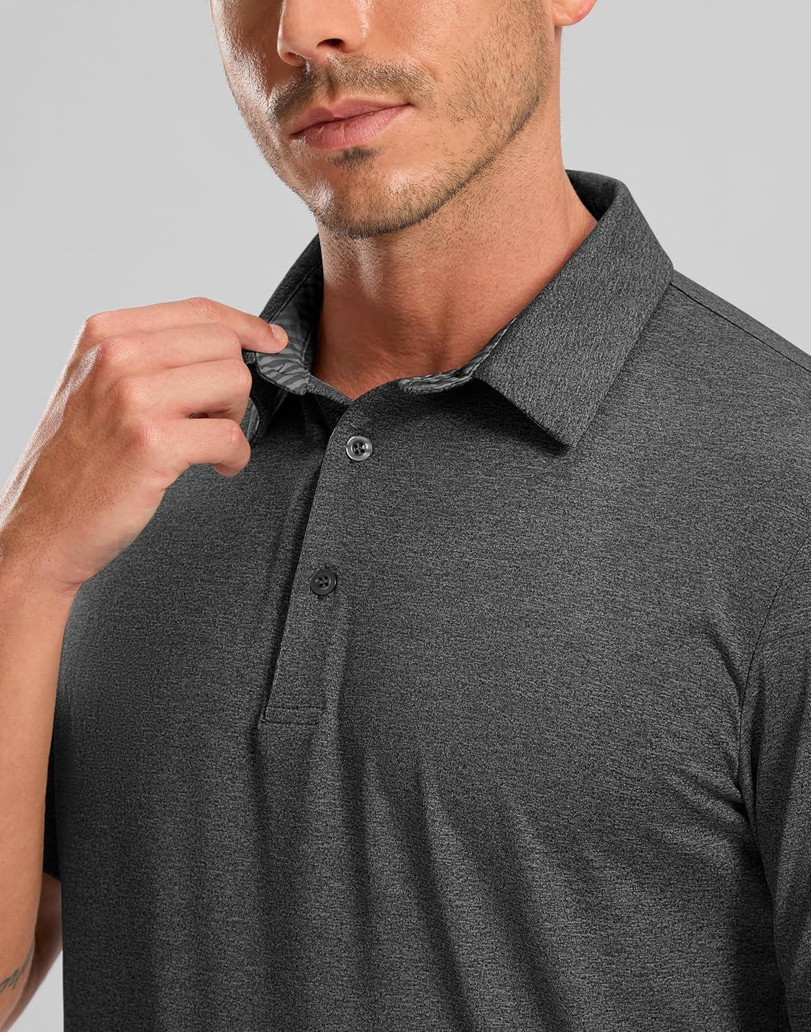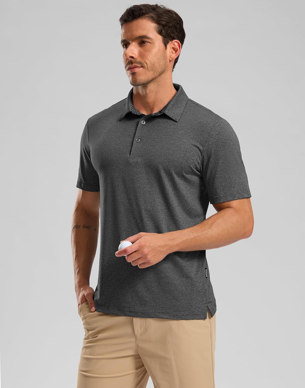 Golf Shirts Heather Polo Short Sleeve Dry Fit Lightweight Moisture Wicking Collared Shirts Casual Athletic Business(Dark Grey)