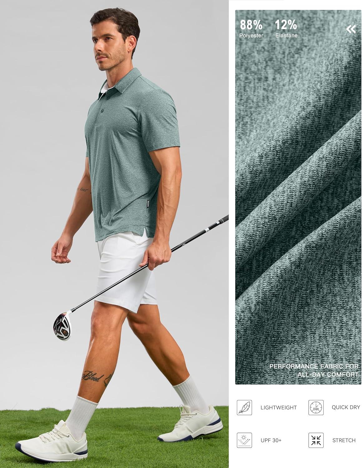 Golf Shirts Heather Polo Short Sleeve Dry Fit Lightweight Moisture Wicking Collared Shirts Casual Athletic Business(Grey Sage)