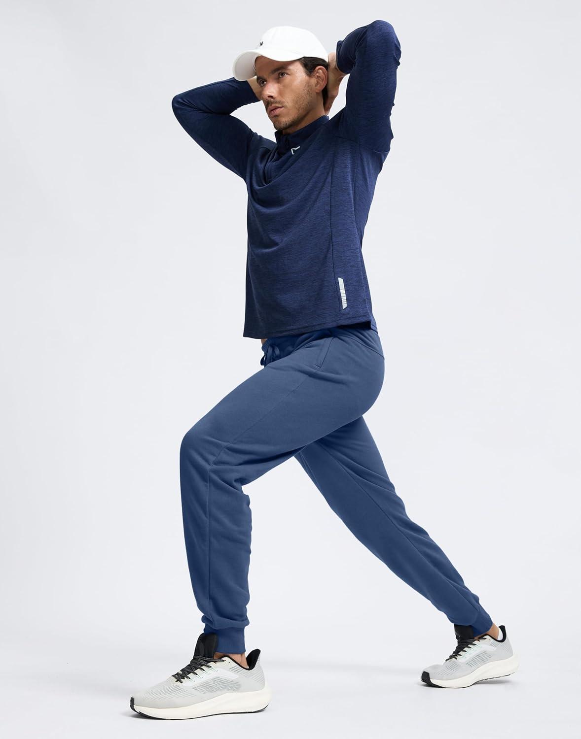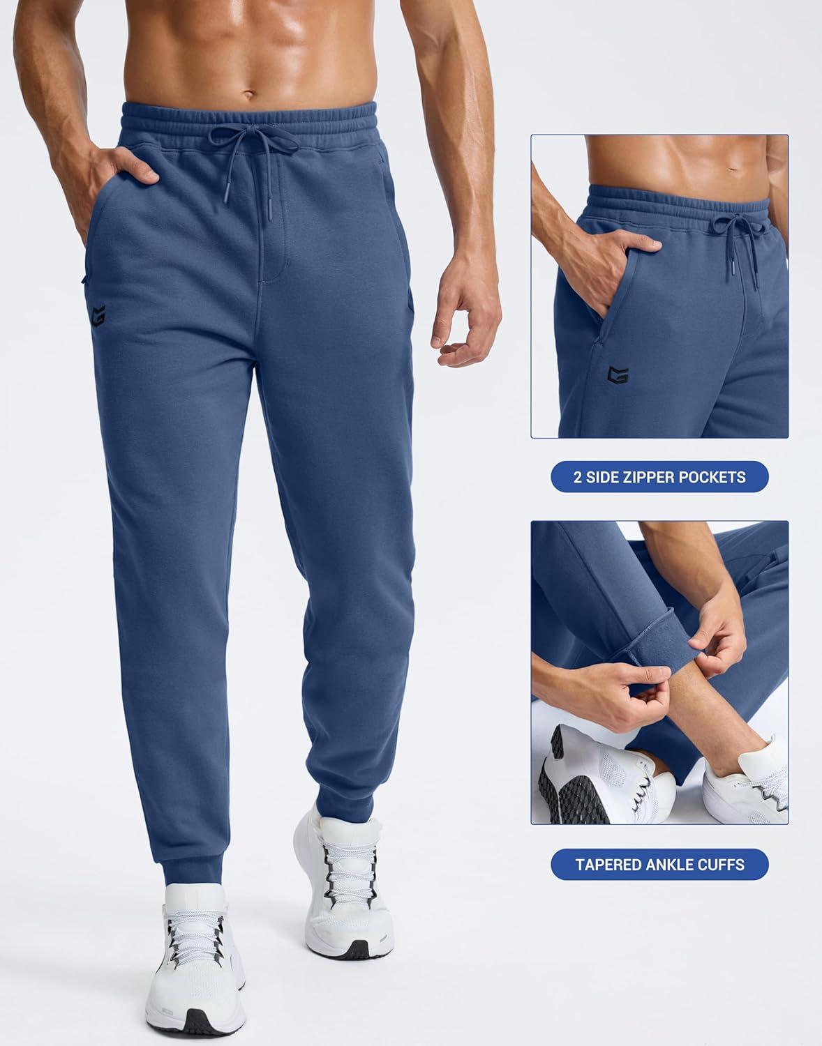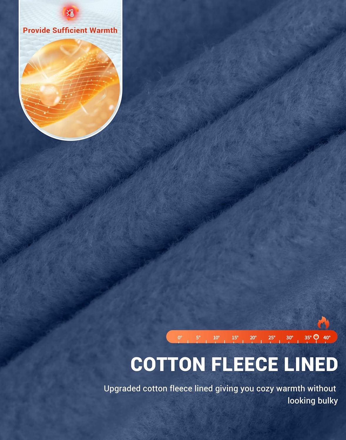 Men’s Cotton Fleece Lined Joggers with Zipper Pockets Athletic Workout Gym Lounge Sweatpants Winter Warm Pants(Navy)