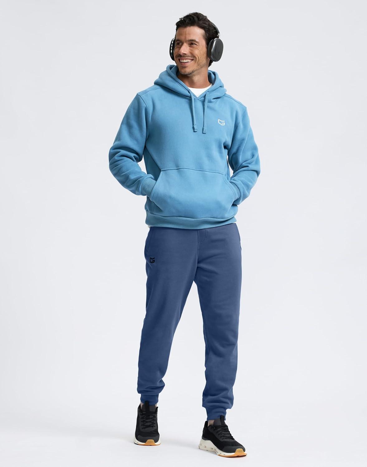 Men’s Cotton Fleece Lined Joggers with Zipper Pockets Athletic Workout Gym Lounge Sweatpants Winter Warm Pants(Peacock Blue)