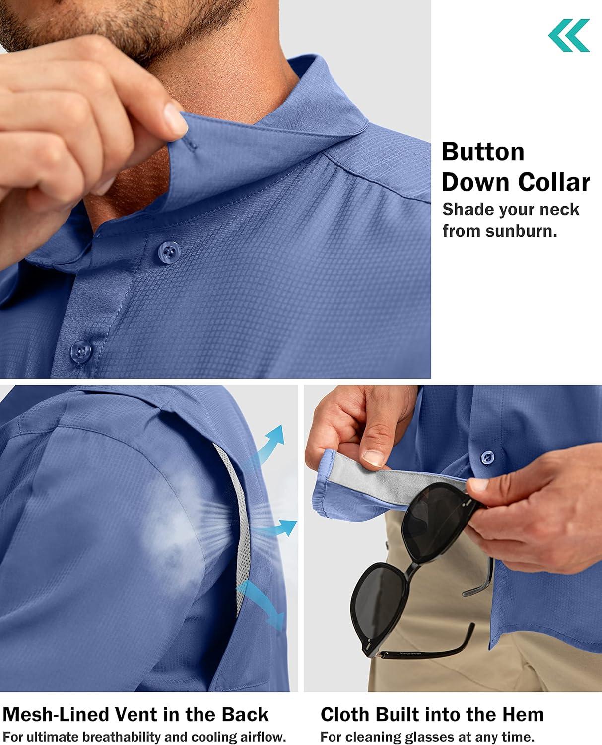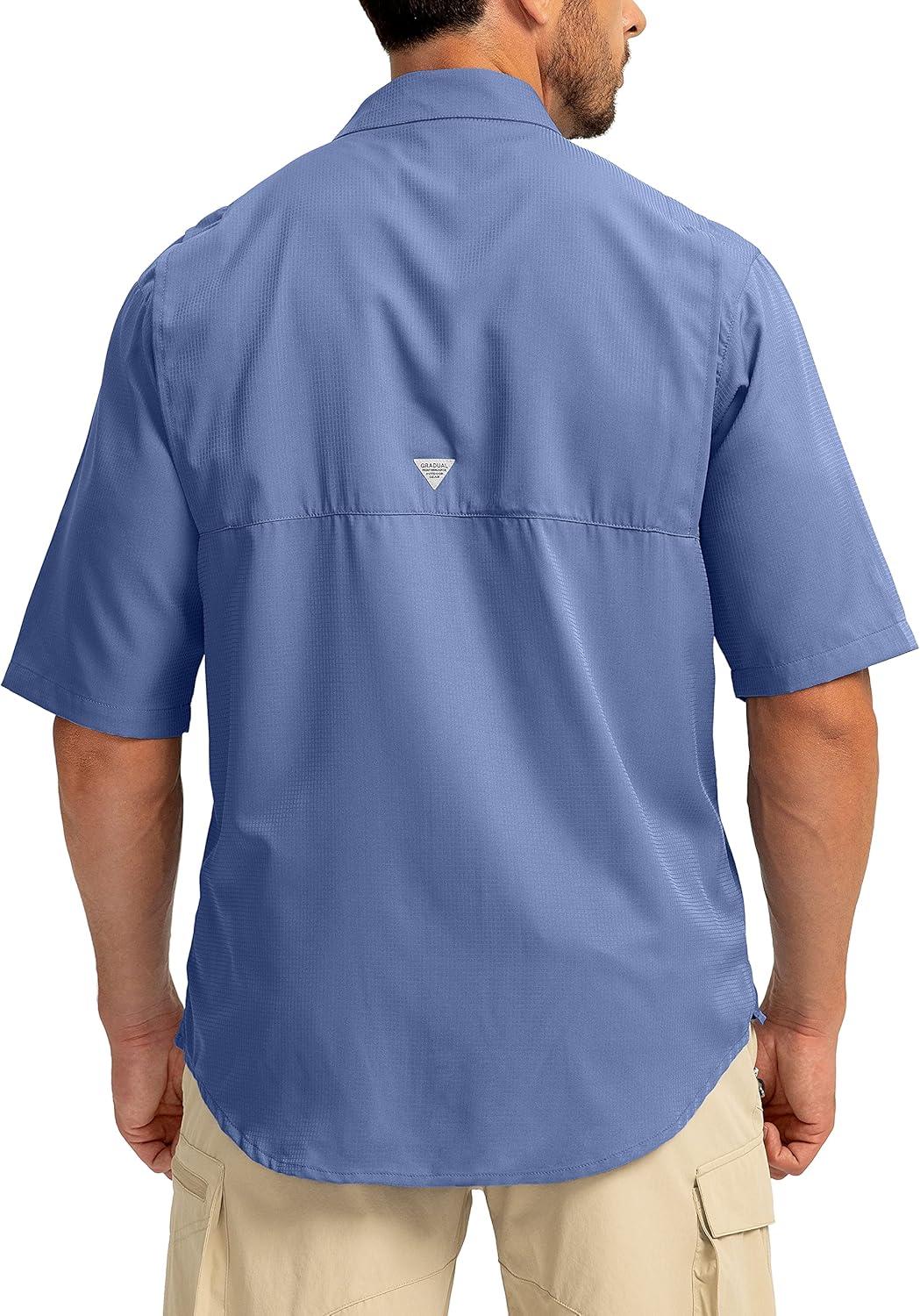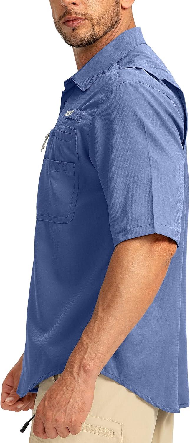 Men's Fishing Shirts with Zipper Pockets UPF 50+ Lightweight Cool Short Sleeve Button Down Shirts for Men Casual Hiking(Dusty Blue)