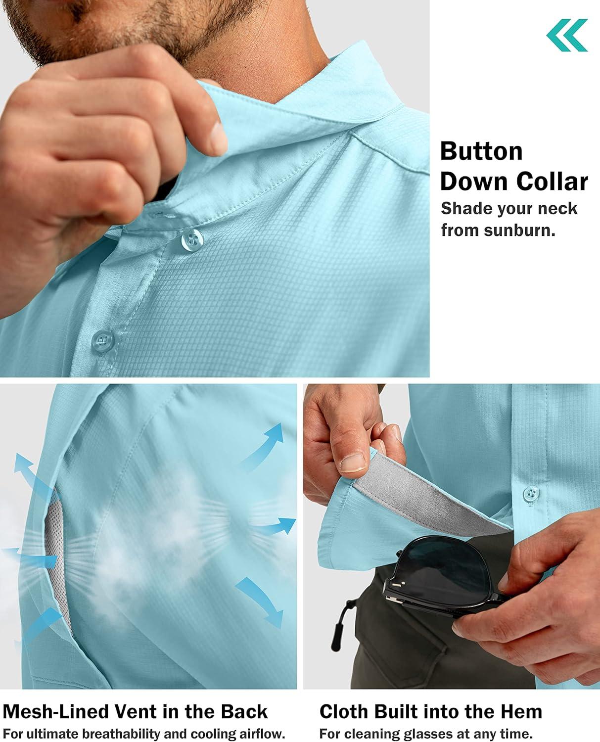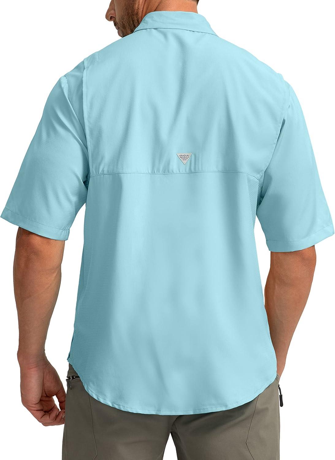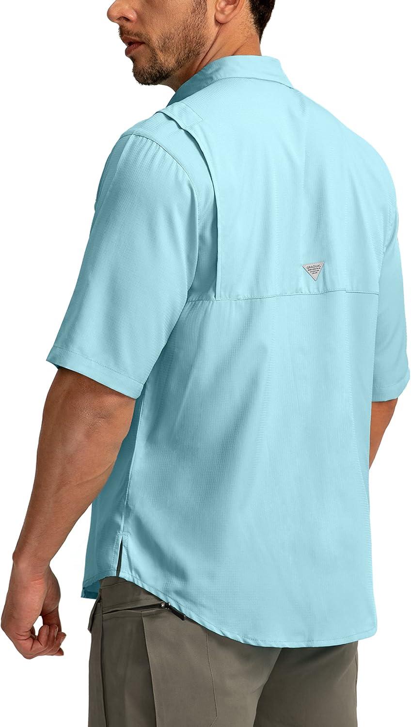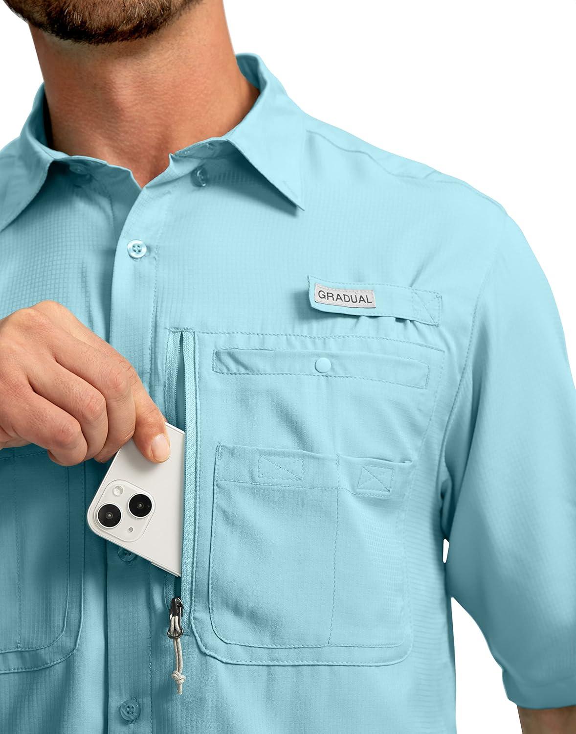 Men's Fishing Shirts with Zipper Pockets UPF 50+ Lightweight Cool Short Sleeve Button Down Shirts for Men Casual Hiking(Gulf Stream)