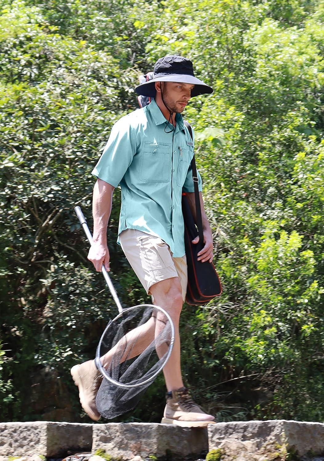 Men’s Fishing Shirts with Zipper Pockets UPF 50+ Lightweight Cool Short Sleeve Button Down Shirts for Men Casual Hiking(Light Green)