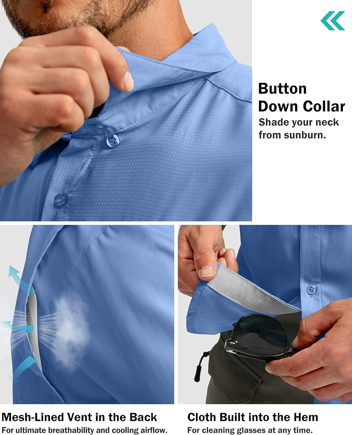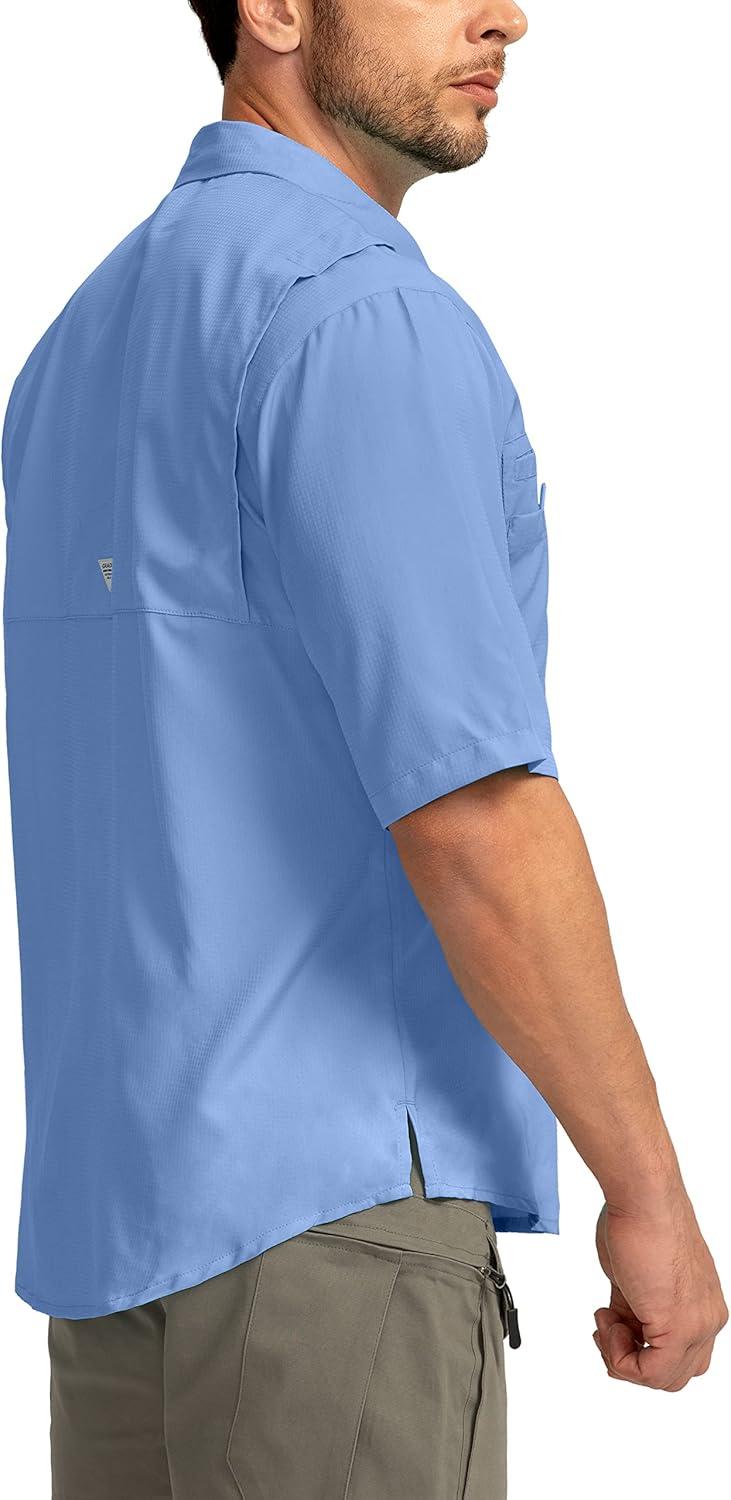 Men's Fishing Shirts with Zipper Pockets UPF 50+ Lightweight Cool Short Sleeve Button Down Shirts for Men Casual Hiking(Sail)