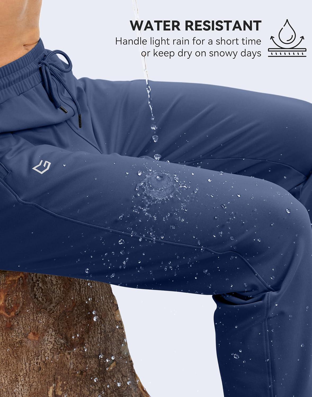 Men’s Fleece Lined Winter Pants 32″/34″/36″ Inseam Tall Sweatpants with Zipper Pockets Warm Athletic Joggers Men(Blue)