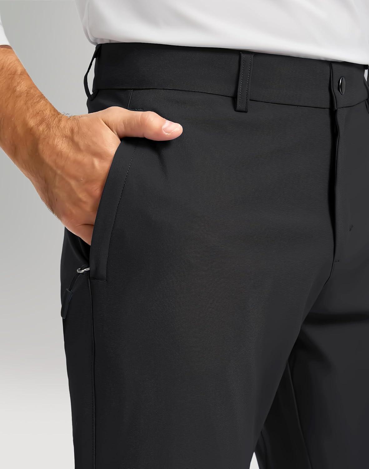 Men's Golf Pants - 30"/32"/34" Slim Fit Stretch Lightweight Dress Pants for Men with Zipper Pockets Casual Work(Black)