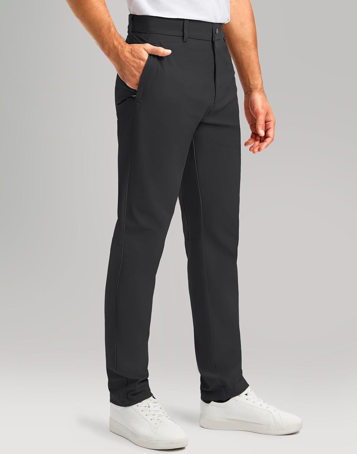 Men’s Golf Pants – 30″/32″/34″ Slim Fit Stretch Lightweight Dress Pants for Men with Zipper Pockets Casual Work(Black)