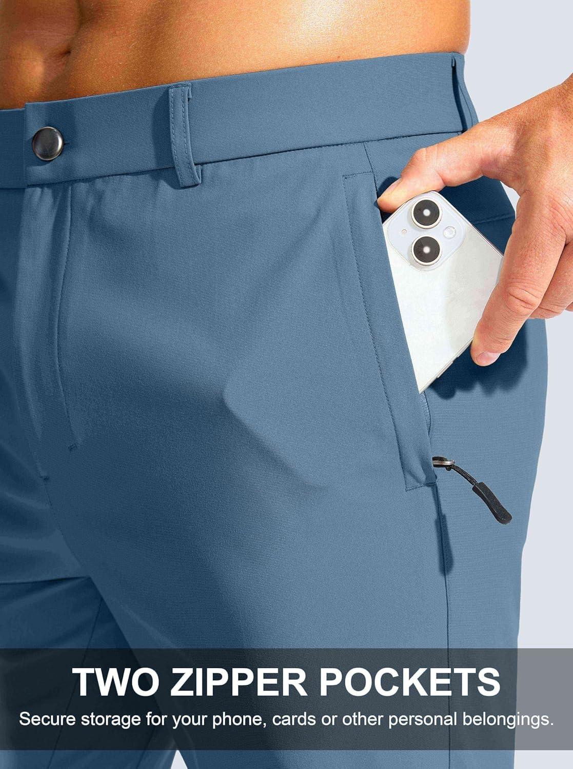 Men’s Golf Pants – 30″/32″/34″ Slim Fit Stretch Lightweight Dress Pants for Men with Zipper Pockets Casual Work(Carbon Dust)