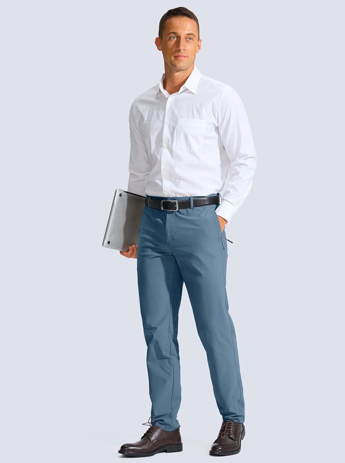 Men's Golf Pants - 30"/32"/34" Slim Fit Stretch Lightweight Dress Pants for Men with Zipper Pockets Casual Work(Slate Blue)