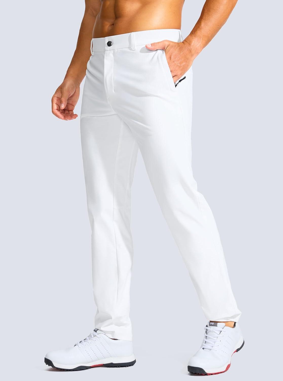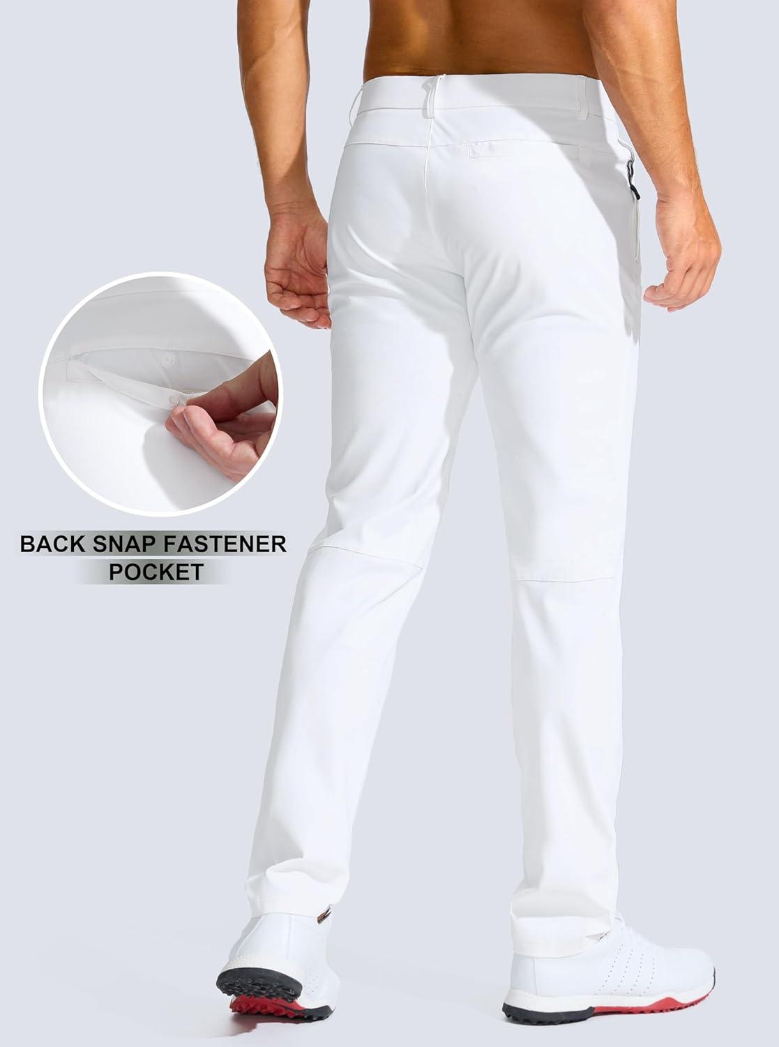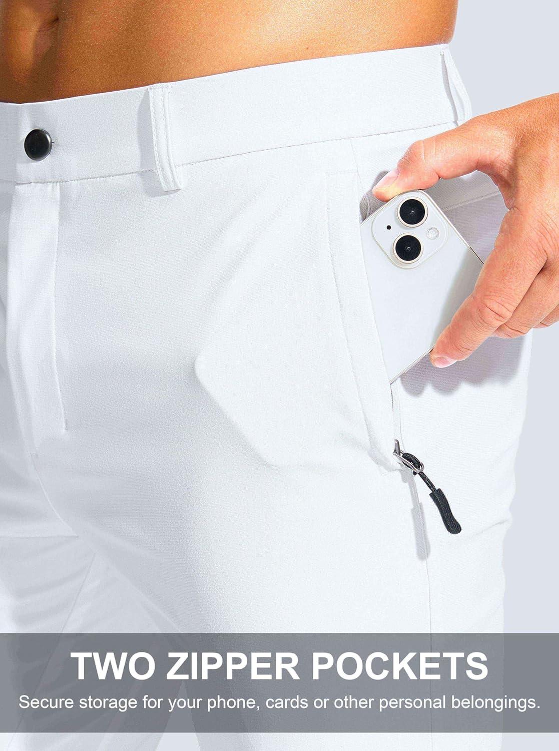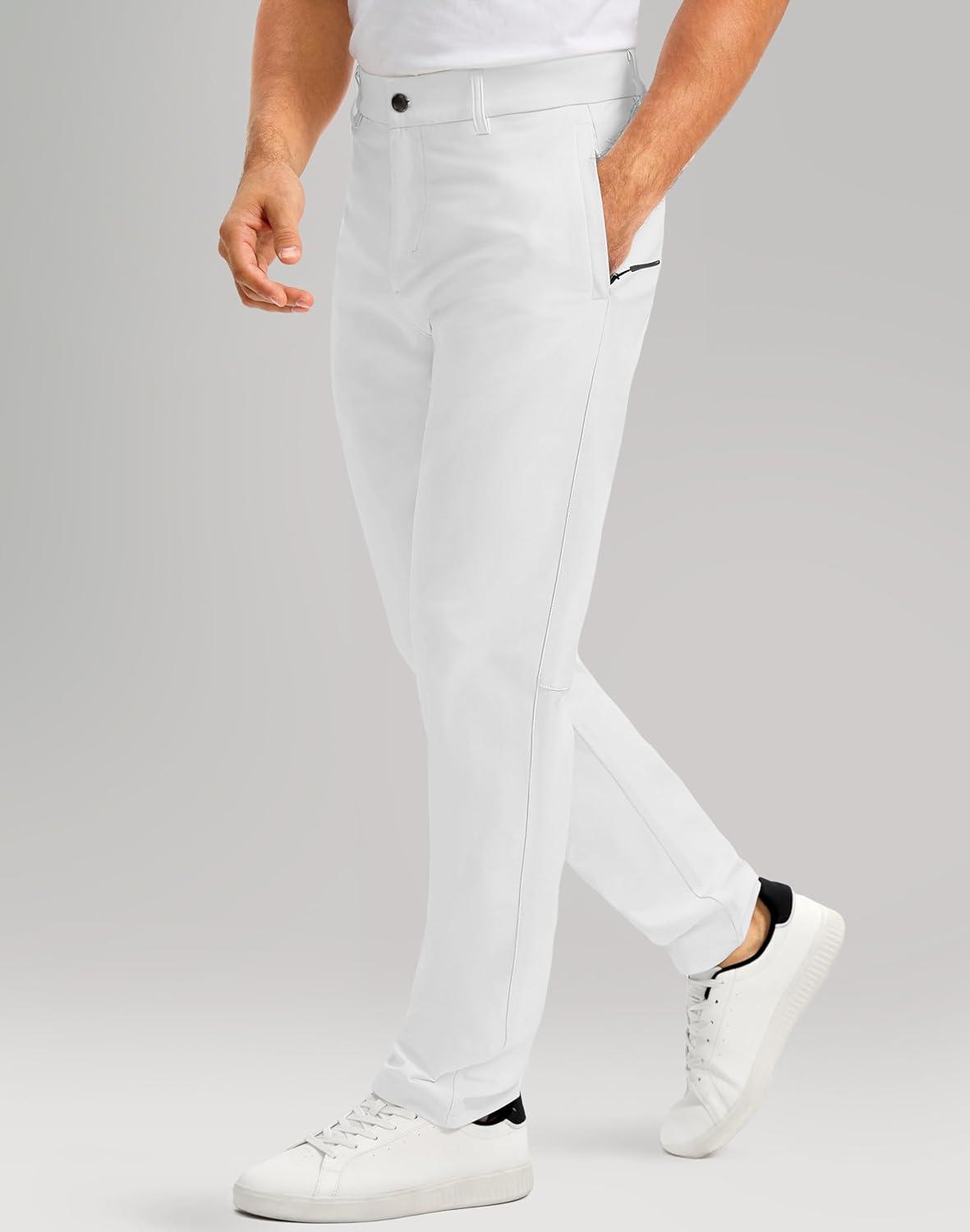 Men’s Golf Pants – 30″/32″/34″ Slim Fit Stretch Lightweight Dress Pants for Men with Zipper Pockets Casual Work(White)