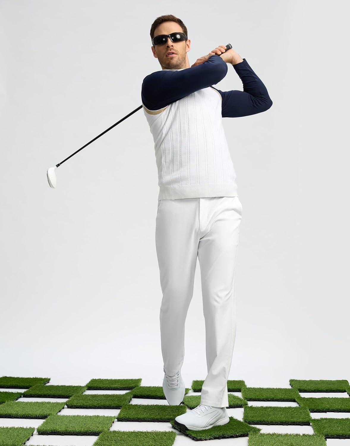 Mens Golf Pants 30″/32″/34″ Stretch Dress Pants Quick Dry Casual Slacks Work Business Trousers for Men with Pockets(White)