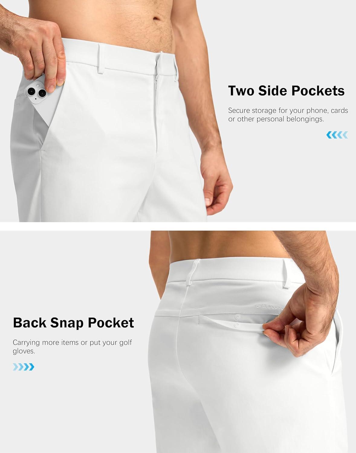 Men’s Golf Pants – 30″/32″/34″ Slim Fit Stretch Lightweight Dress Pants for Men with Zipper Pockets Casual Work(Black)
