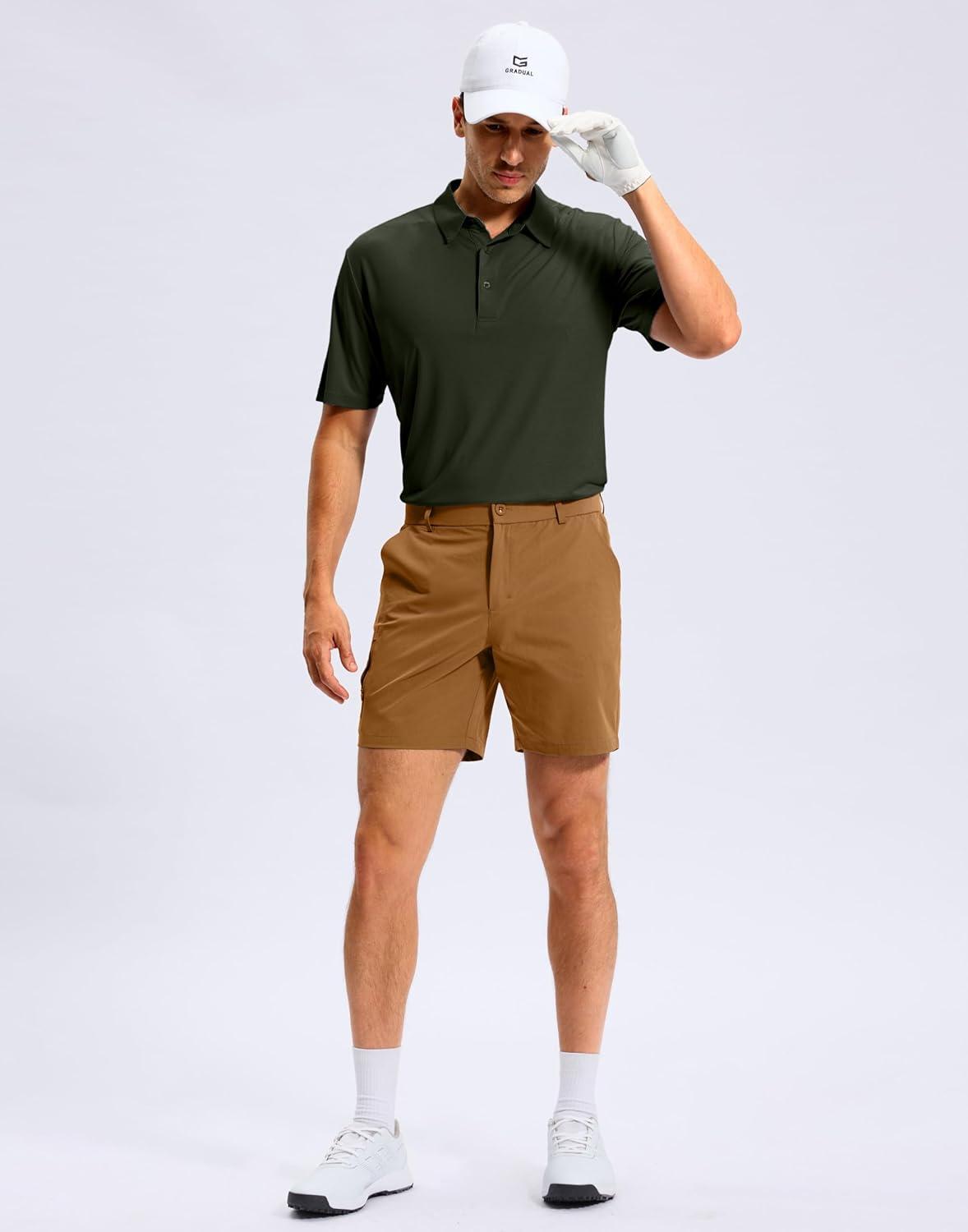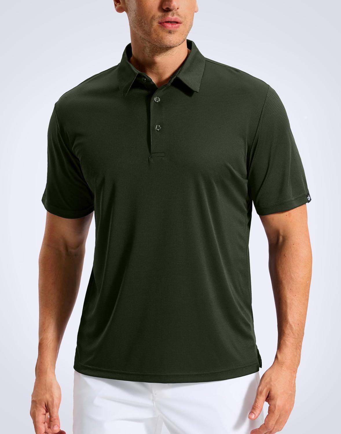 Mens Golf Shirt Jacquard Short Sleeve Dry Fit Moisture Wicking Performance Athletic Summer Collared Polo Shirts for Men(Olive Green)