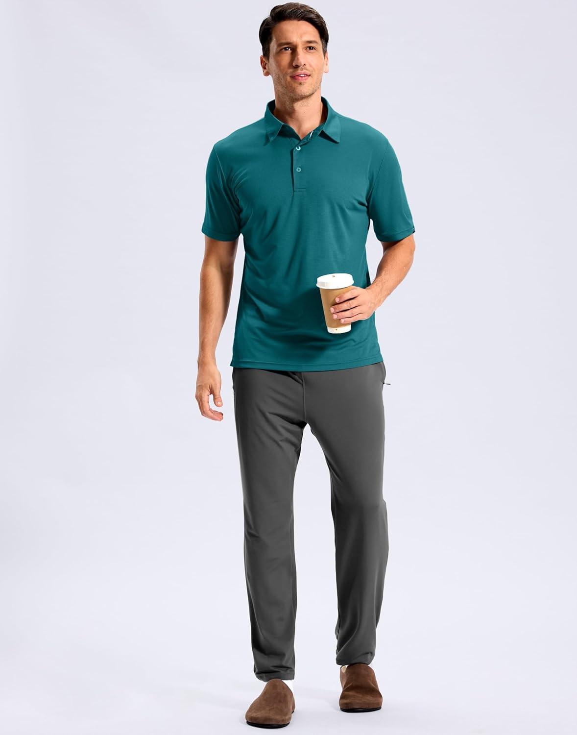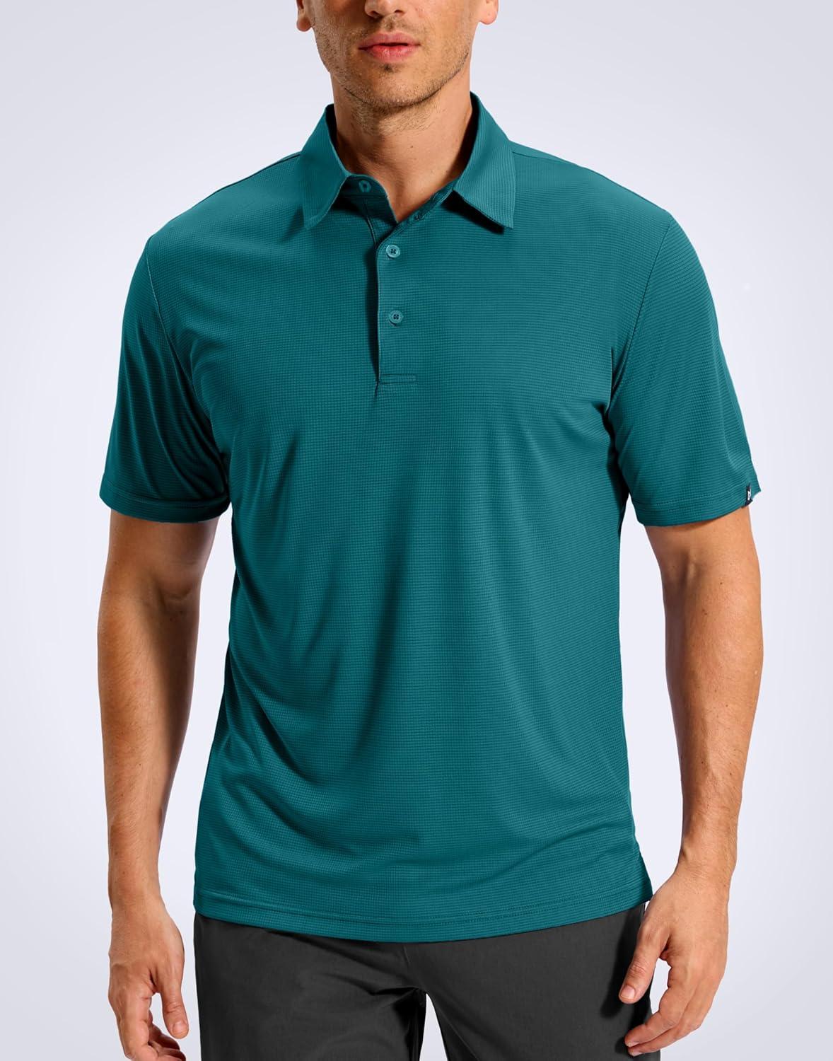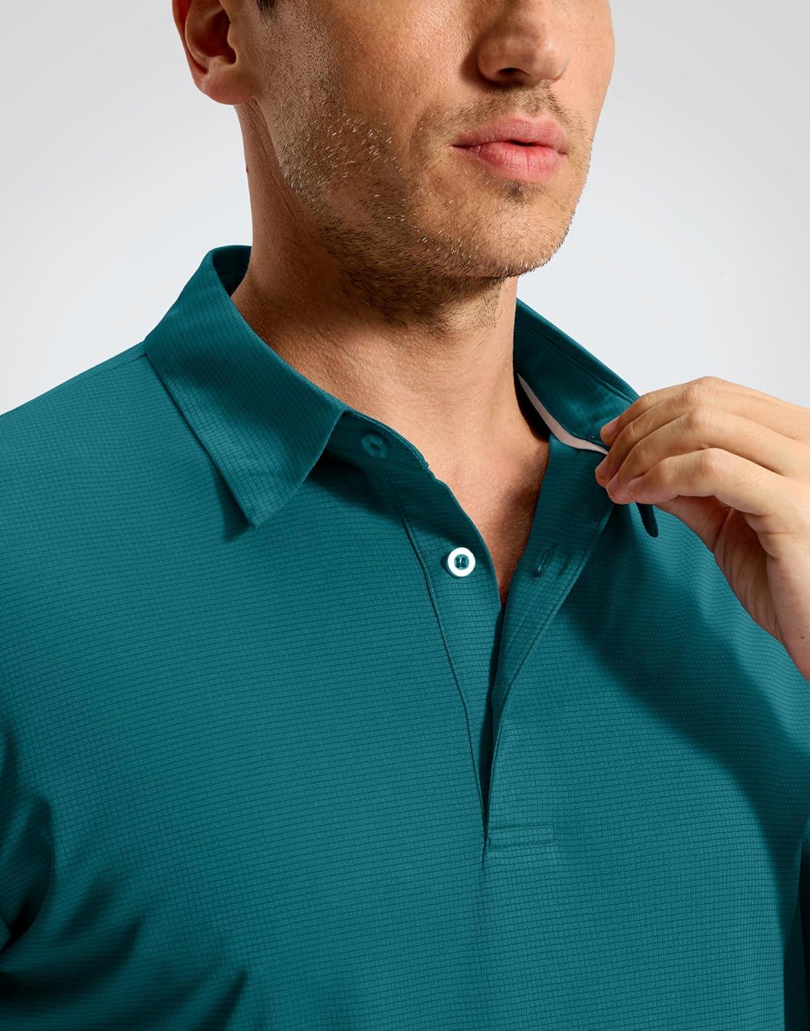 Mens Golf Shirt Jacquard Short Sleeve Dry Fit Moisture Wicking Performance Athletic Summer Collared Polo Shirts for Men(Peacock Green)