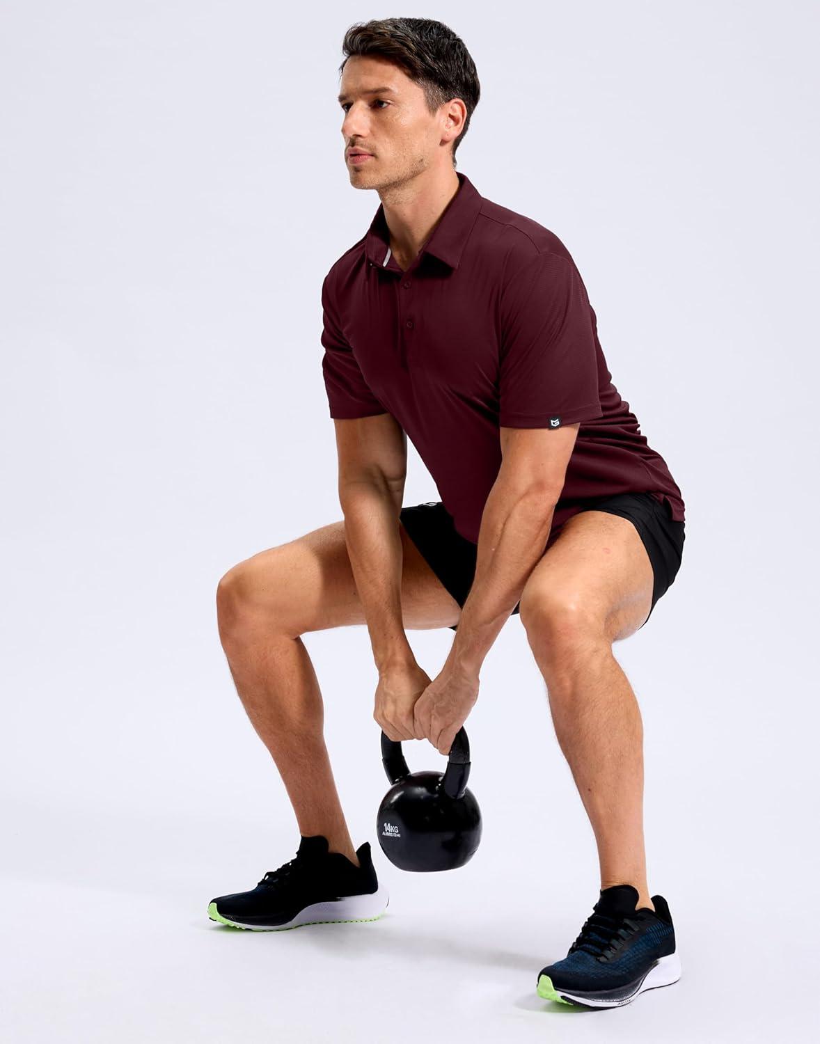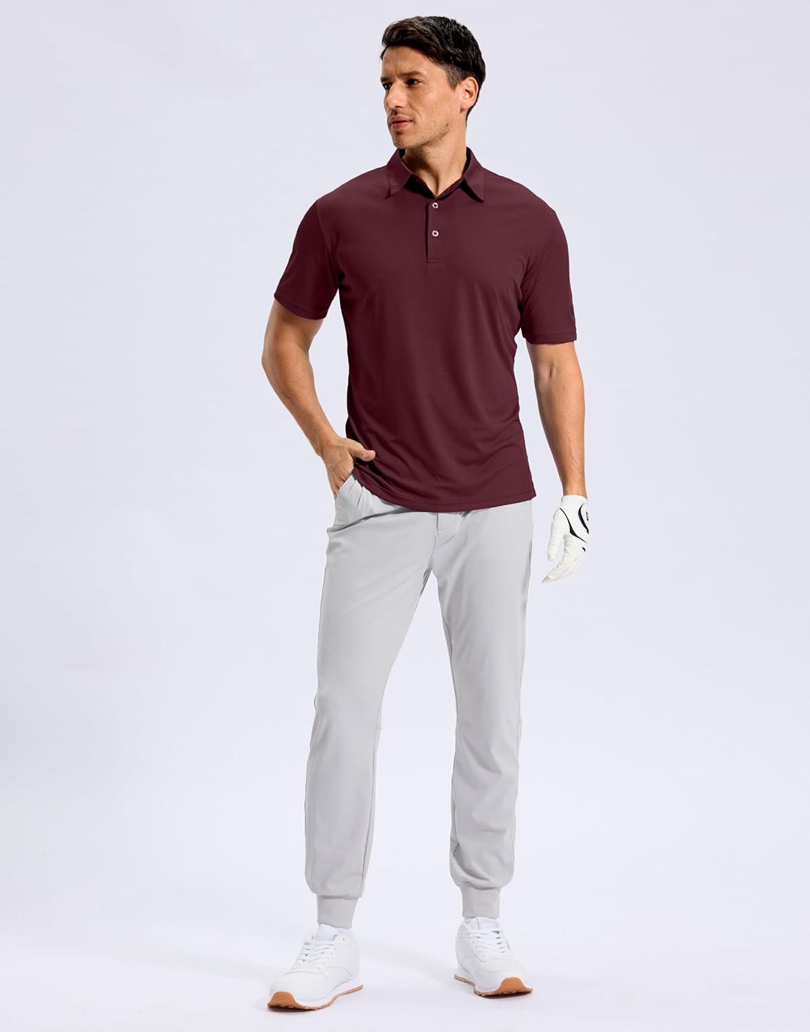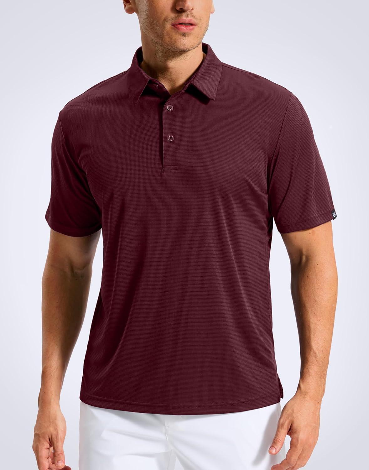 Mens Golf Shirt Jacquard Short Sleeve Dry Fit Moisture Wicking Performance Athletic Summer Collared Polo Shirts for Men(Wine Red)