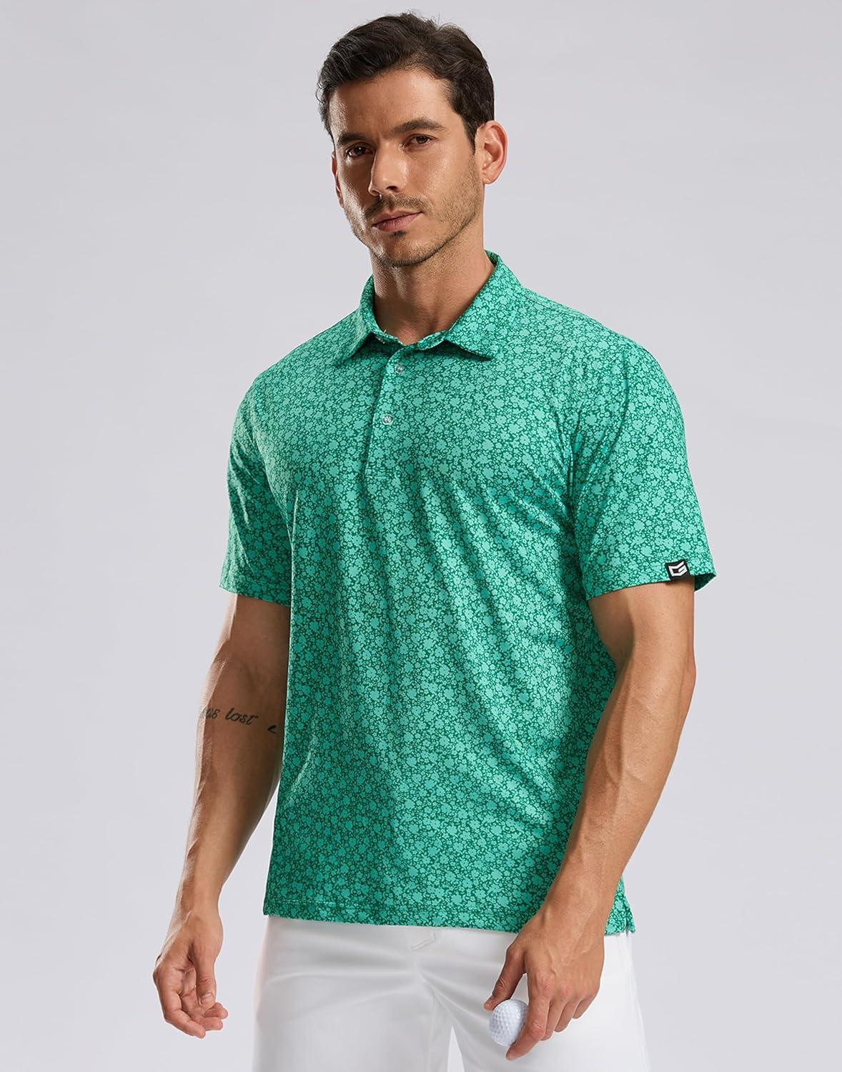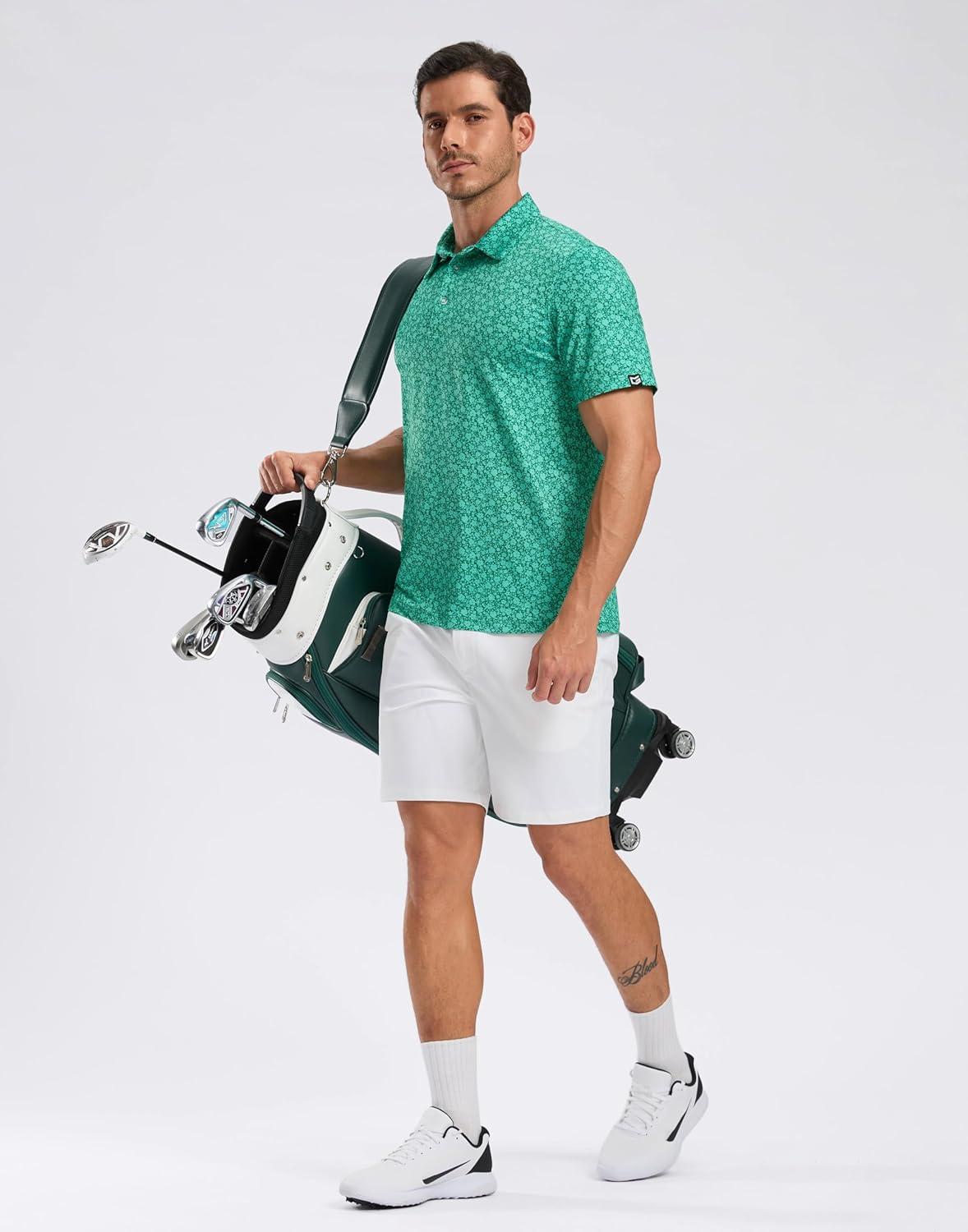 Men’s Golf Shirt Short Sleeve Dry Fit Polo Moisture Wicking Print Collared Golf Shirts for Men Casual Lightweight(Golf_collection)