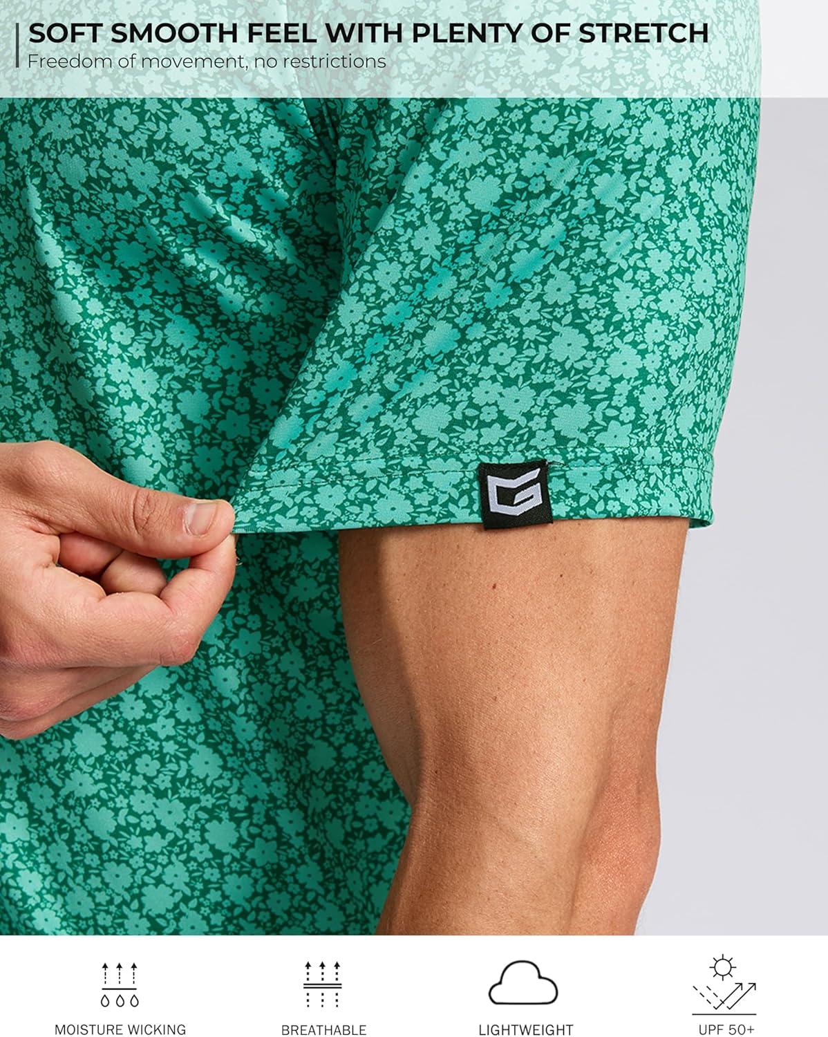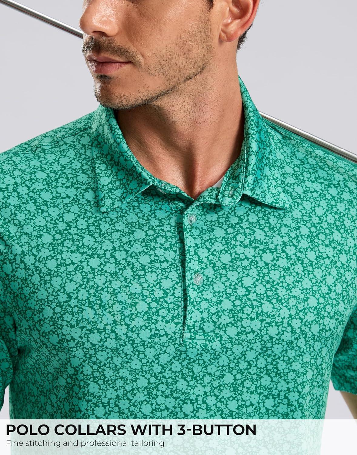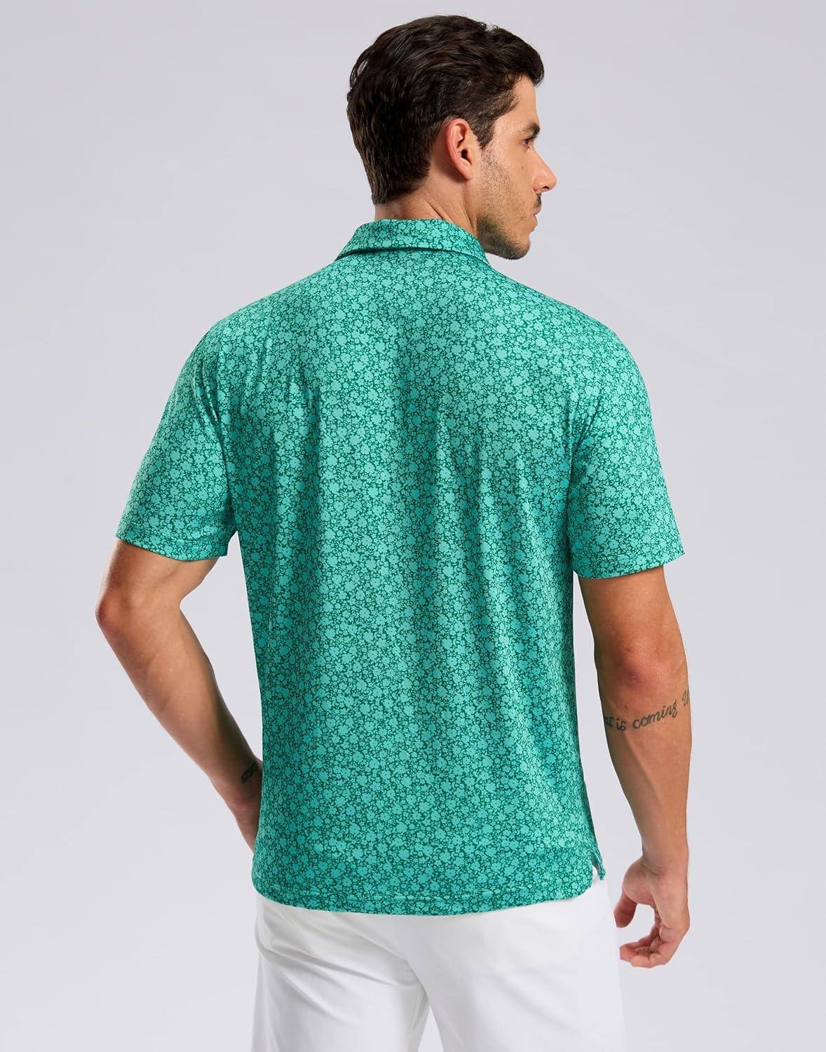 Men's Golf Shirt Short Sleeve Dry Fit Polo Moisture Wicking Print Collared Golf Shirts for Men Casual Lightweight(Green Floral)