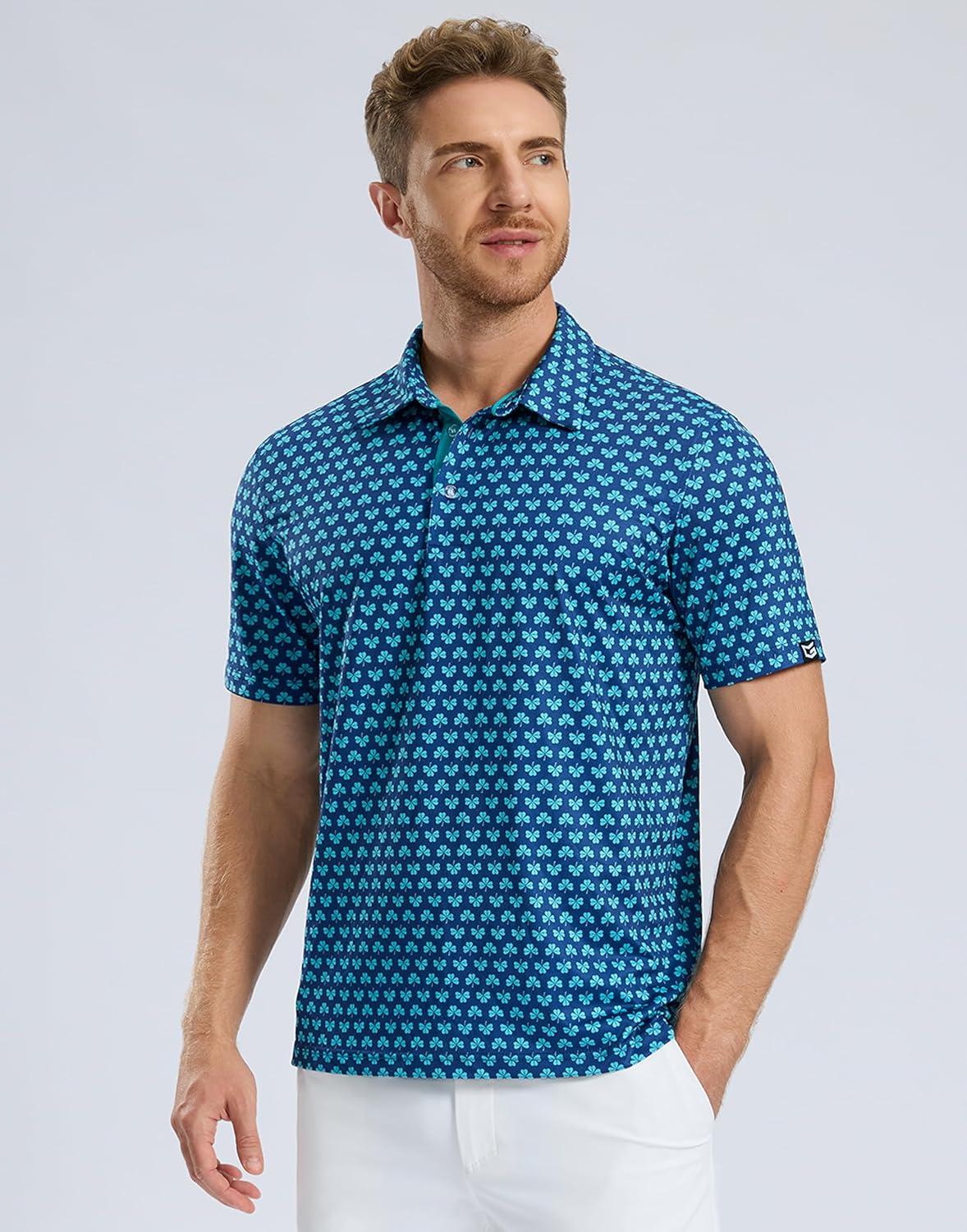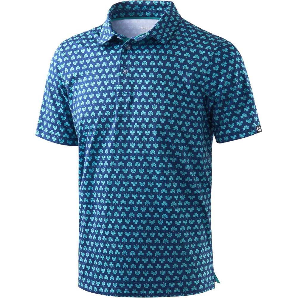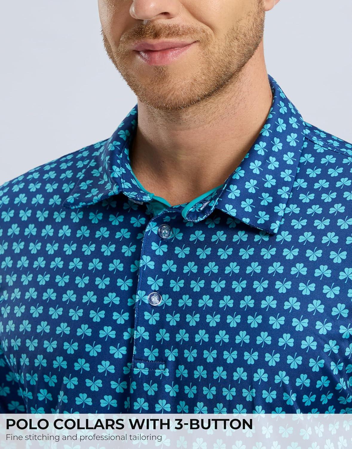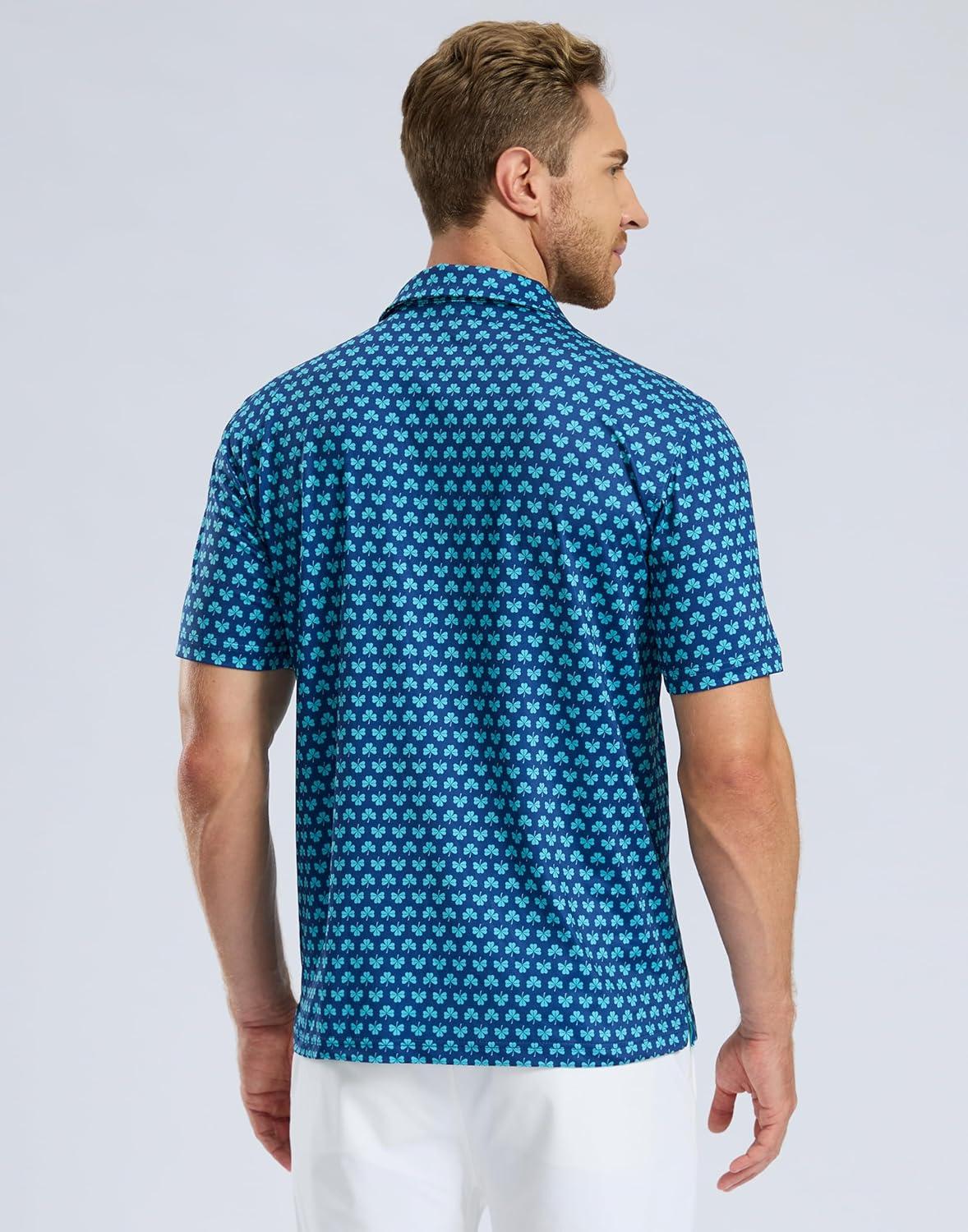 Men's Golf Shirt Short Sleeve Dry Fit Polo Moisture Wicking Print Collared Golf Shirts for Men Casual Lightweight(Tibetan_clover)
