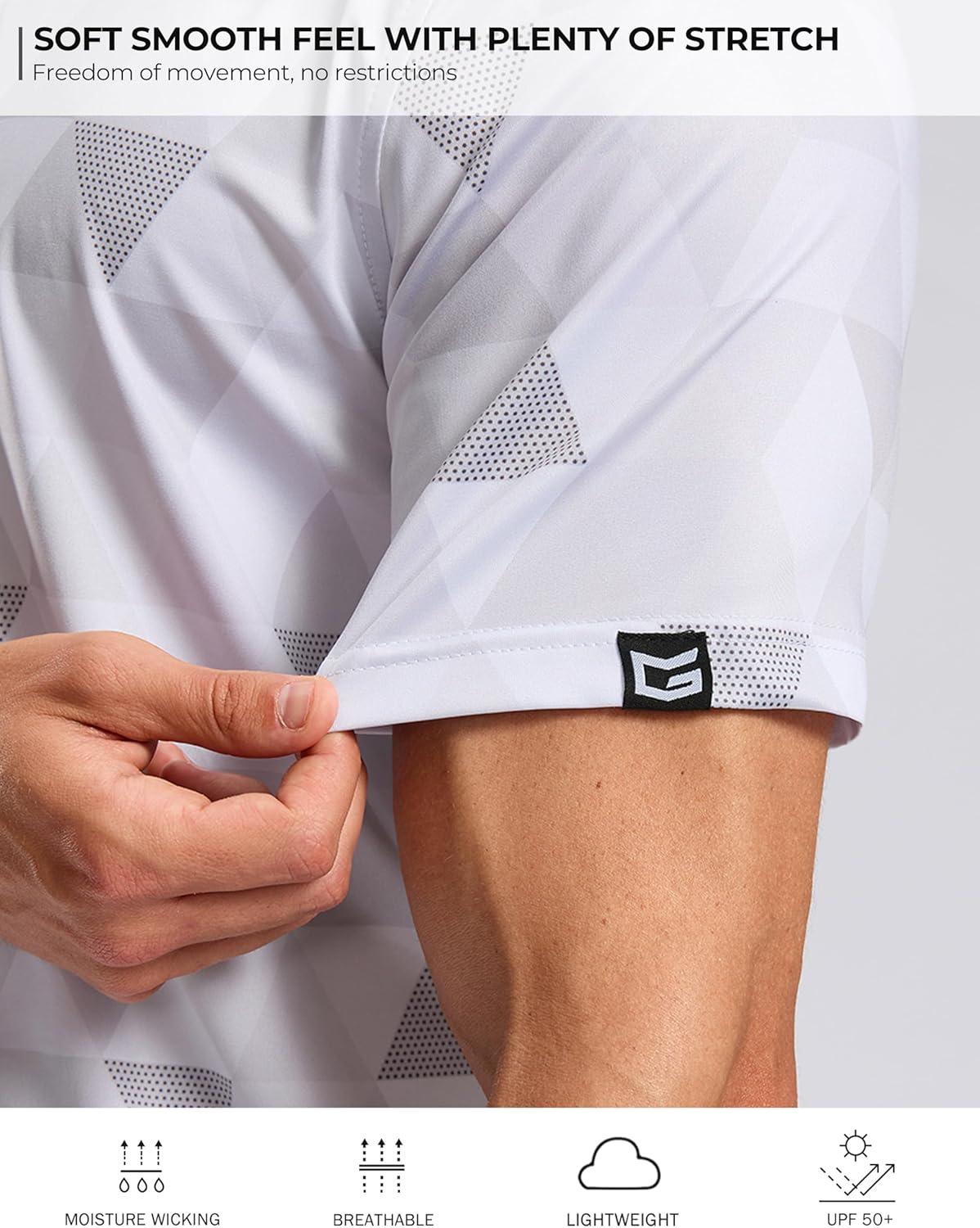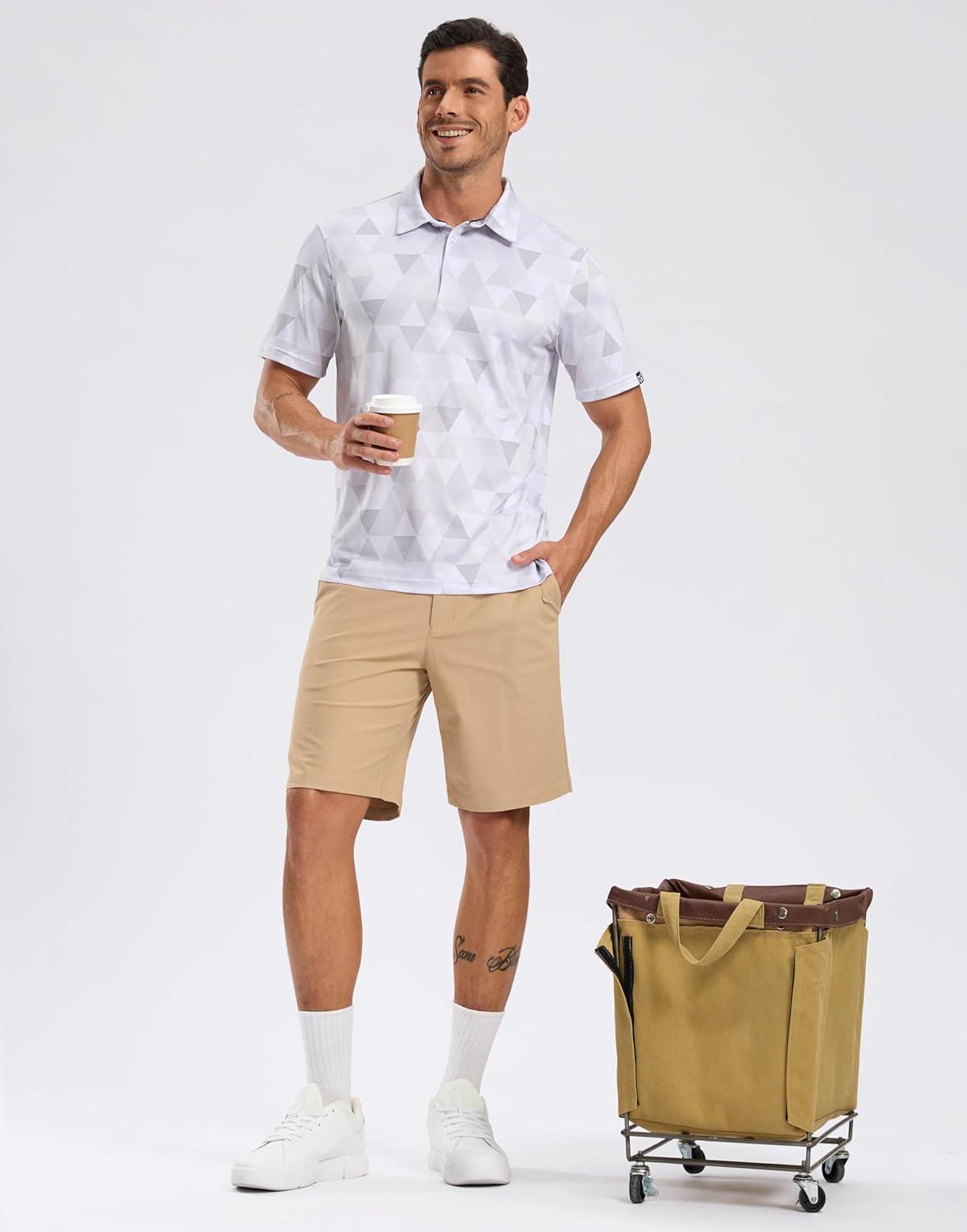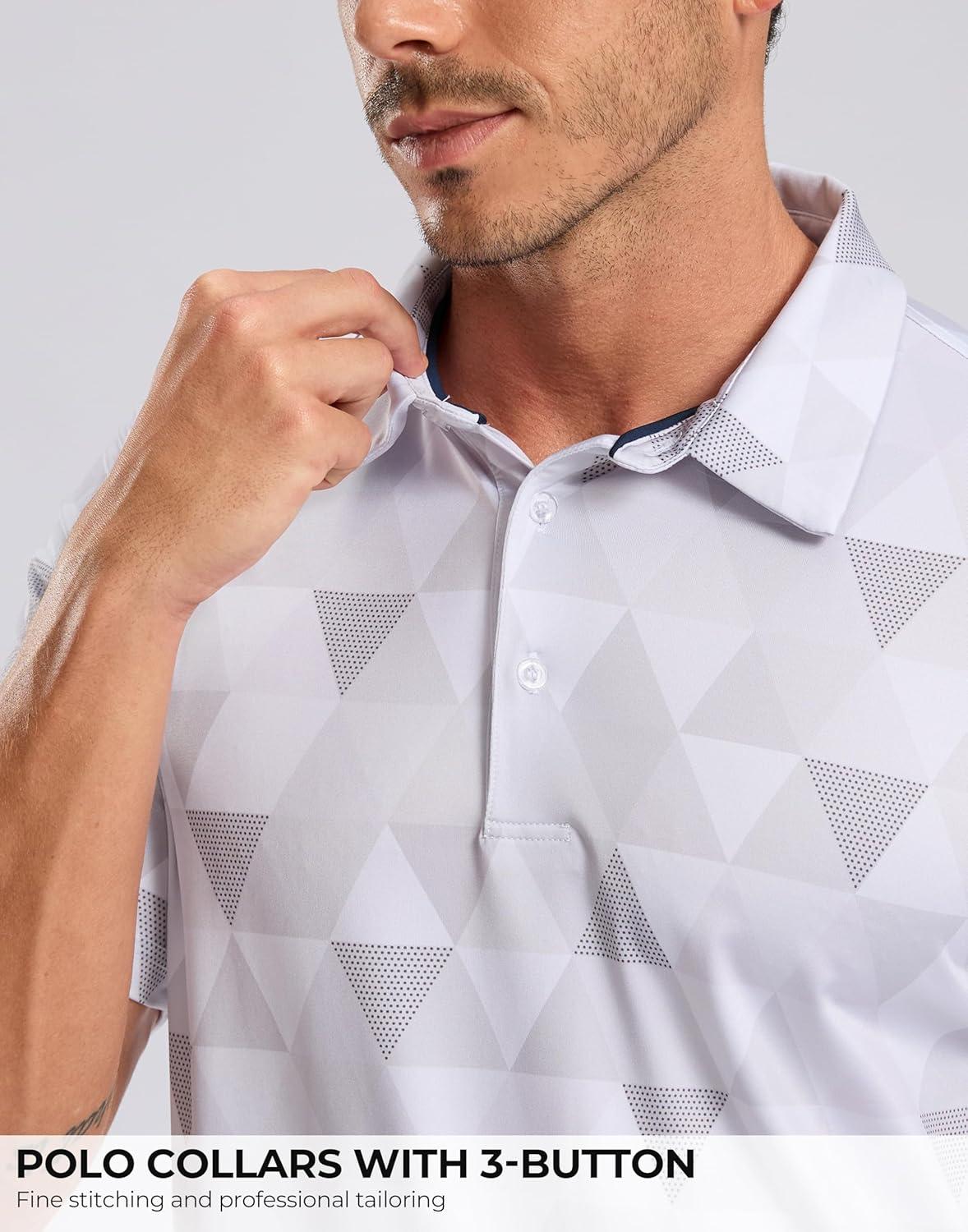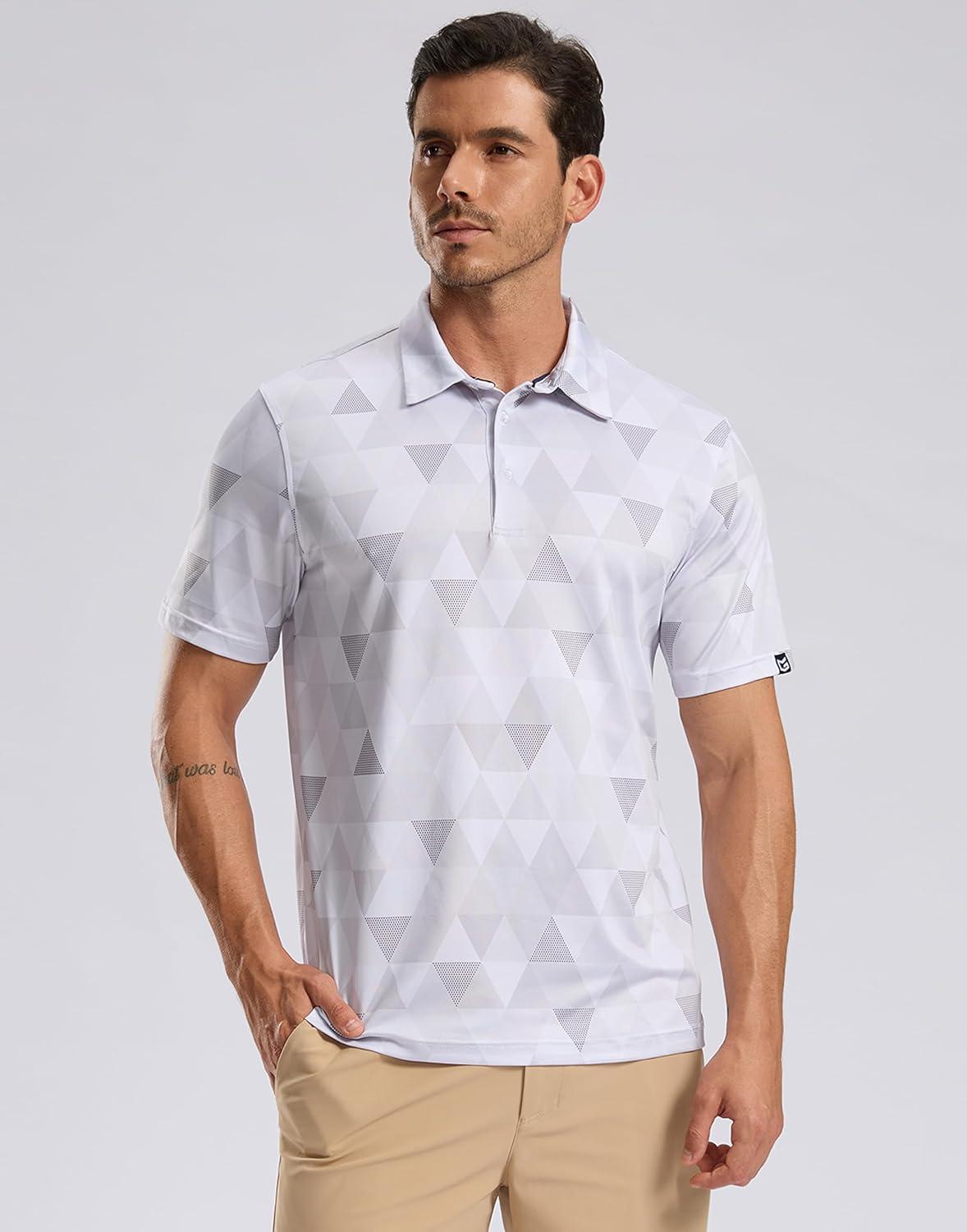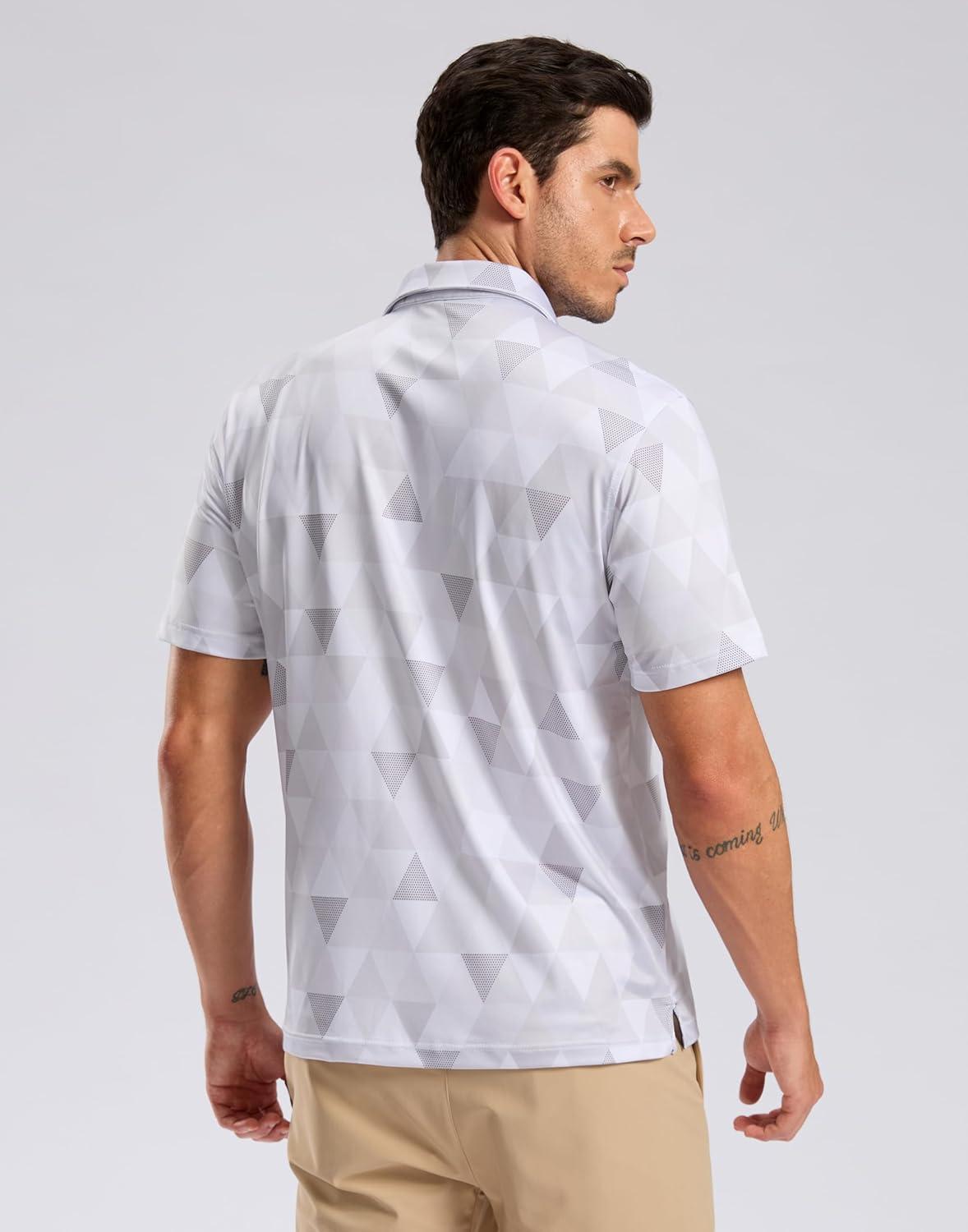 Men's Golf Shirt Short Sleeve Dry Fit Polo Moisture Wicking Print Collared Golf Shirts for Men Casual Lightweight(Triangular_geometry)